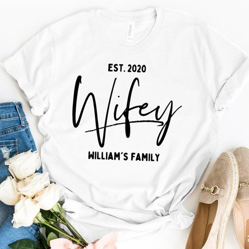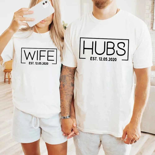 Custom Wifey & Hubby Matching Couple Shirts - Wedding Anniversary Gift with Established Date