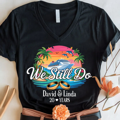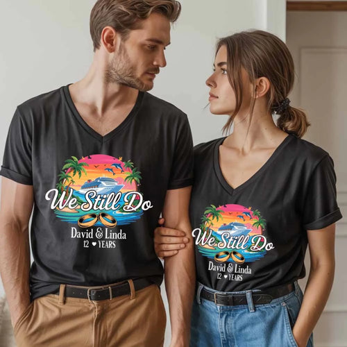 We Still Do Custom Anniversary Cruise V-neck Shirts, Years Married For Couples Celebration Tees