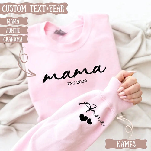 Custom Mama Sweatshirt with Special Date & Kids Names on Sleeve