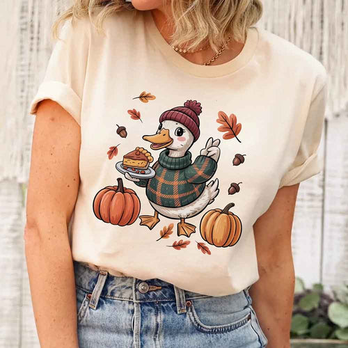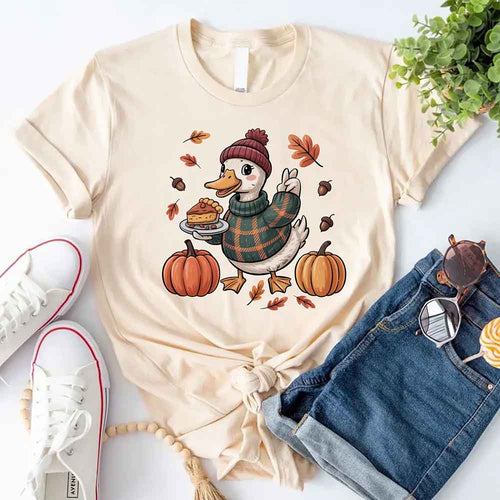 Duck Fall Shirt – Cottagecore Autumn Vibes with Coffee & Pumpkins Tees