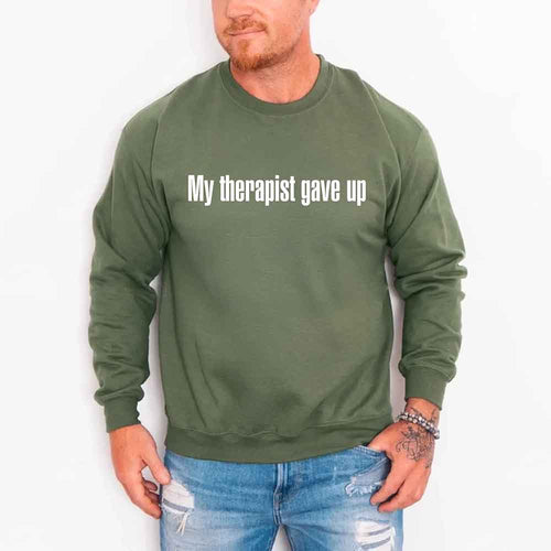 My Therapist Gave Up Sweatshirt - Funny Sarcastic Humor Crew Neck