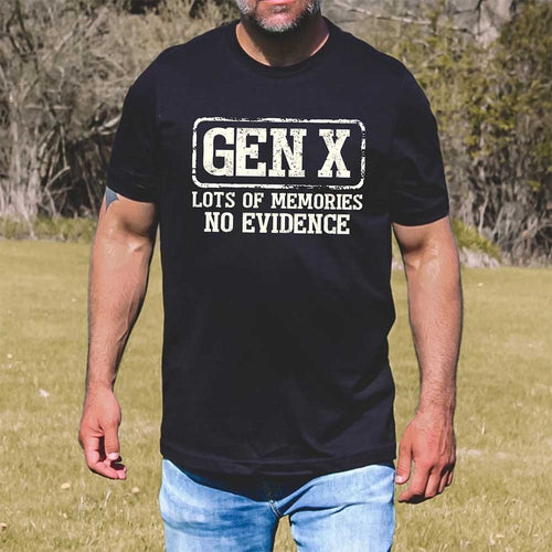 Funny Gen X T-Shirt Lots of Memories No Evidence Tee - Sarcastic Unisex Shirt