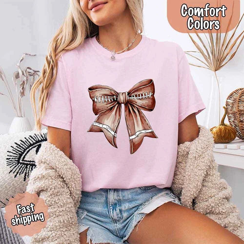 Comfort Colors Vintage Football Bow T-Shirt – Cute Game Day Tee for Women