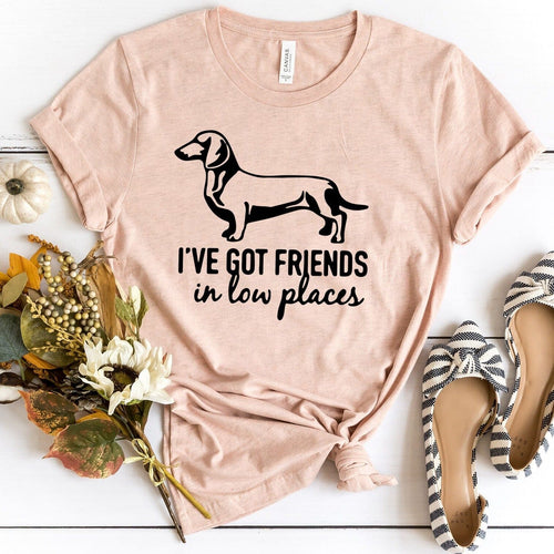 Camiseta de perro salchicha "Tengo amigos en lugares bajos"