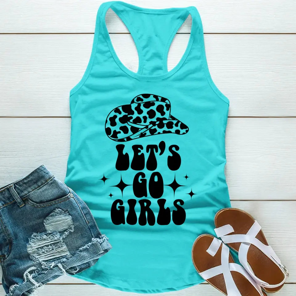 Get ready to celebrate in style with the Let’s Go Girls Bachelorette Party Tank Top! Perfect for brides, bridesmaids, and the whole squad, this trendy tank is a must-have for country-themed bachelorette parties, girls' night out, or Nashville getaways.