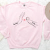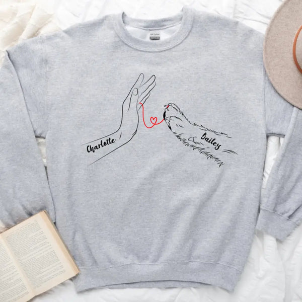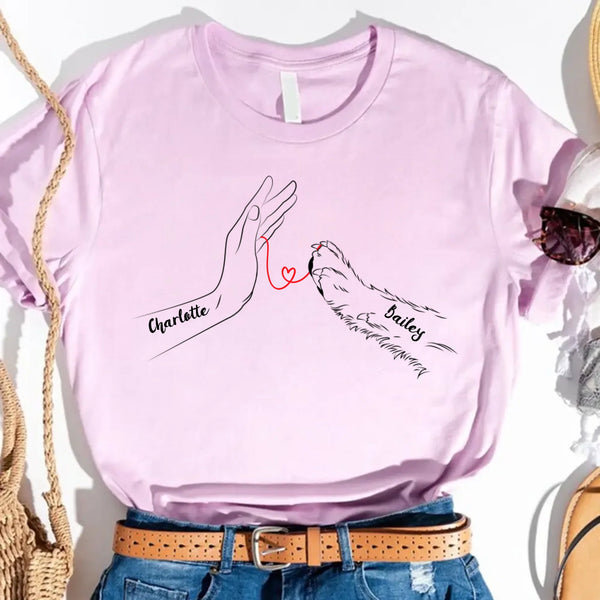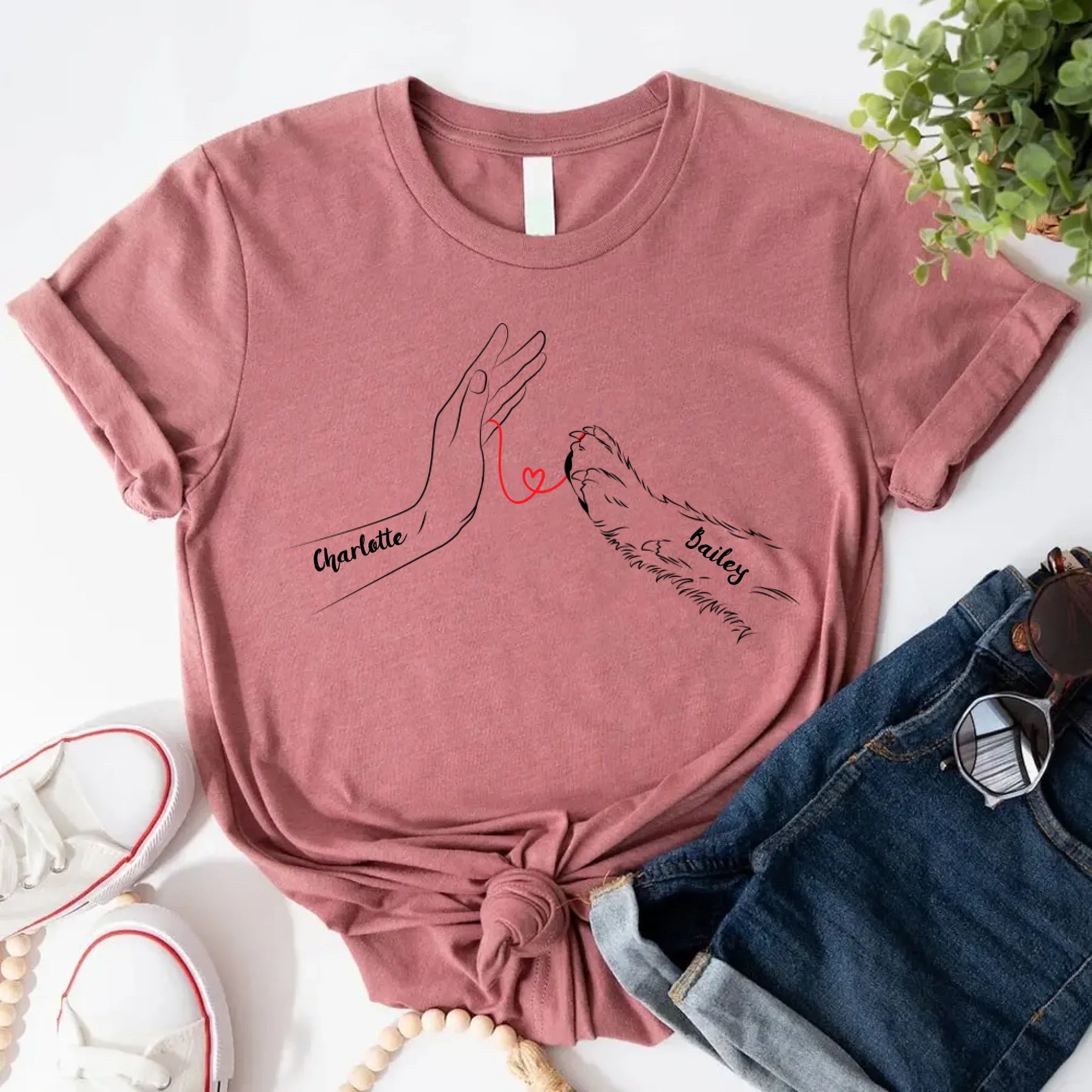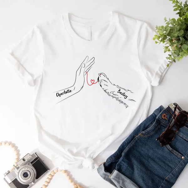 Top personalizado con forma de corazón de hilo rojo y pata de perro y mano humana
