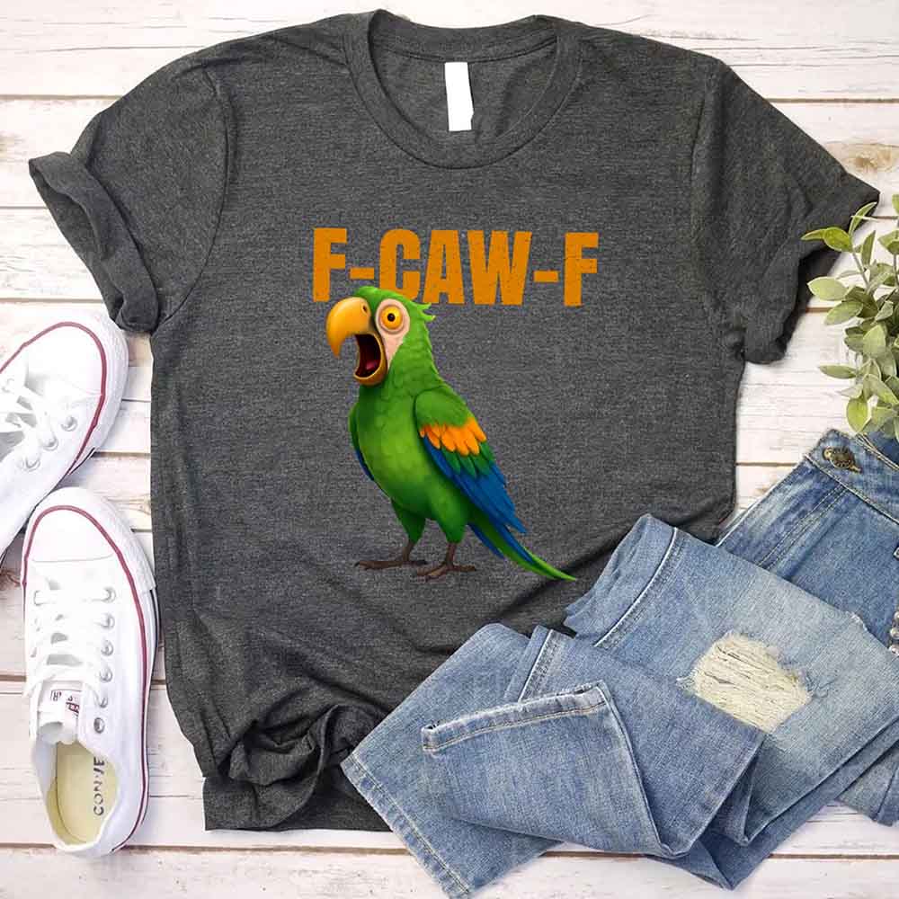 This lively tee features a colorful parrot paired with the humorous “F-Caw-F” expression, giving the design a spirited personality. The unisex cut makes it comfortable for everyday errands, relaxed weekends, or casual gatherings. The fabric stays soft, and the print holds its color through steady use. Whether the wearer enjoys bird-themed humor or simply likes a light joke, this shirt offers an easy and cheerful option for daily outfits.