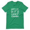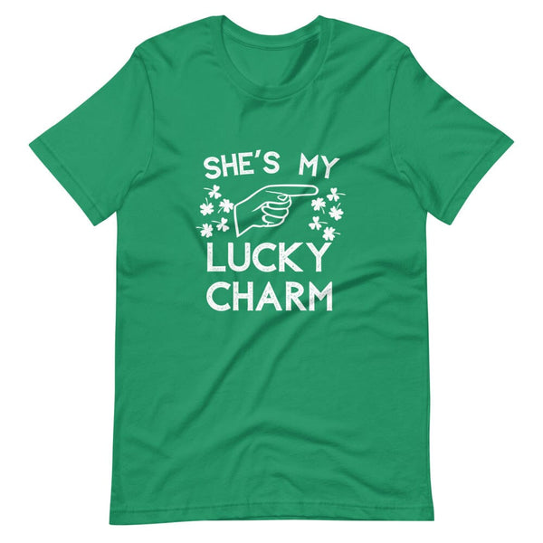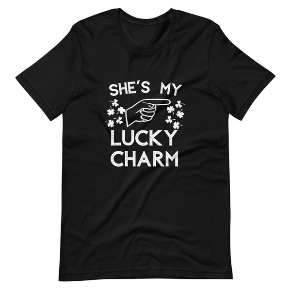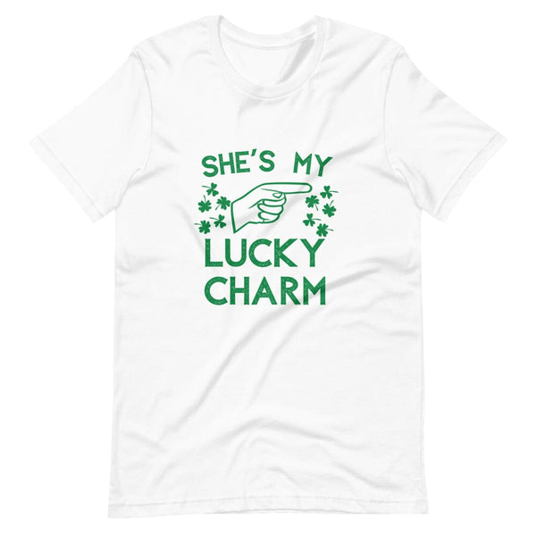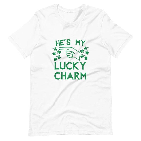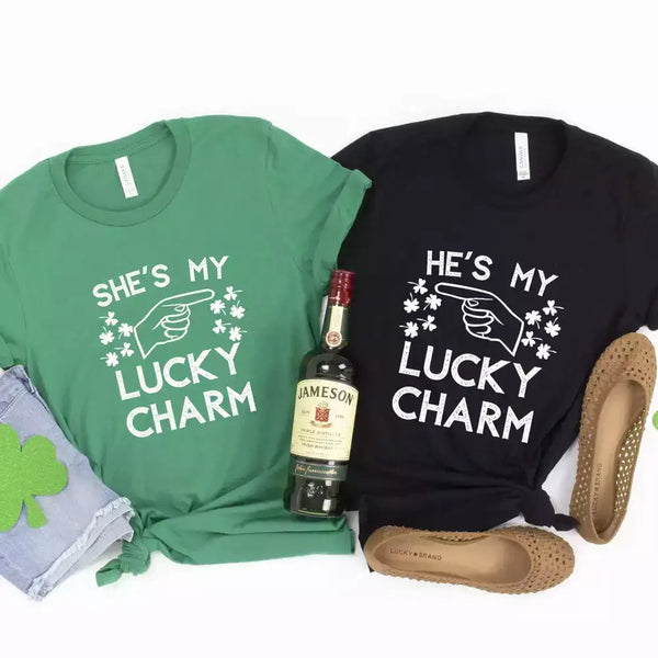 Camiseta para parejas que señala con el amuleto de la suerte "Ella/Él"