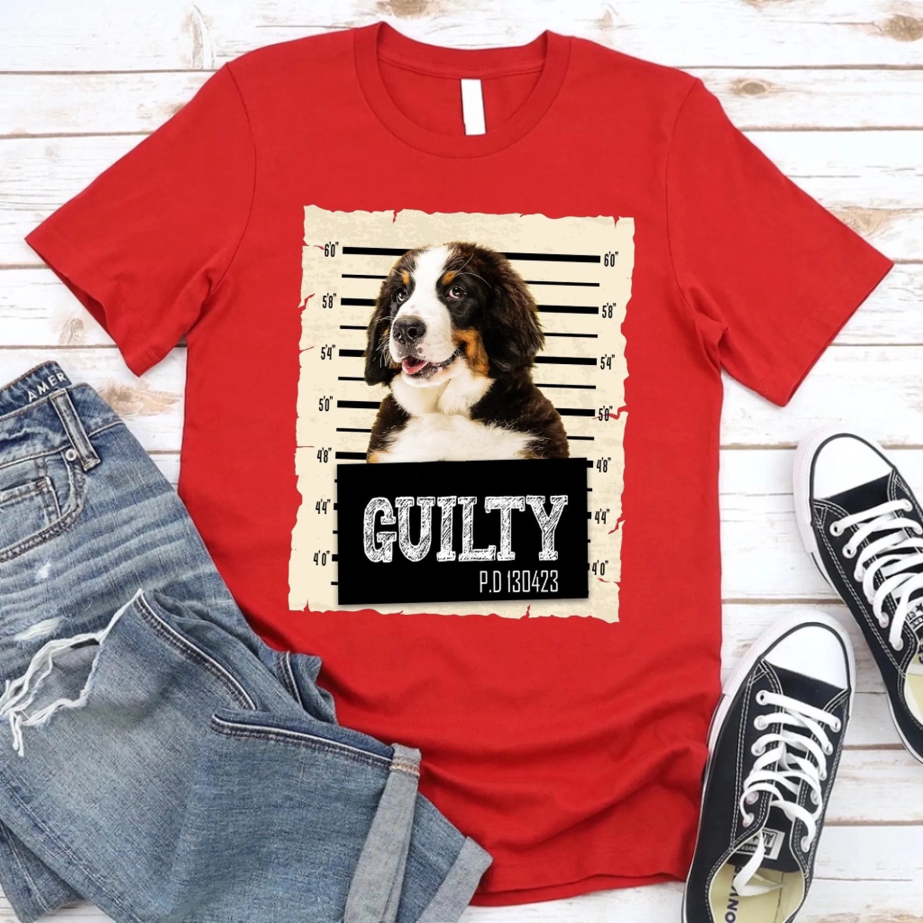 - Personalizable: Te ofrecemos la opción de añadir una foto de tu querida mascota para personalizar tu camiseta, ya que sabemos que cada mascota es única. Simplemente sube su foto y crearemos un diseño de foto policial personalizado que capture su personalidad única.