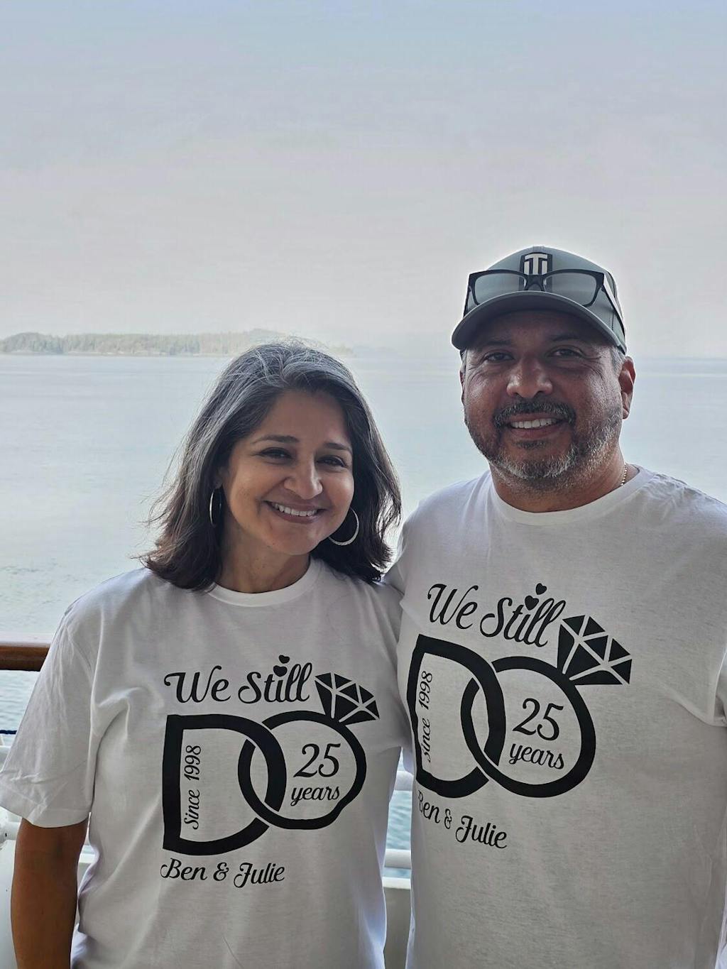Wow, happy 43rd anniversary! Weโre so touched to hear that your husband wore the shirt proudly and that it was part of such a special celebration in Hawaii, Pearl Harbor, no less! Weโre thrilled you both loved the comfort, quality, and V-neck style, and even more excited that the shirts brought so many compliments your way. Thank you for letting us be a little part of your milestone. Cheers to many more years of love and celebration!