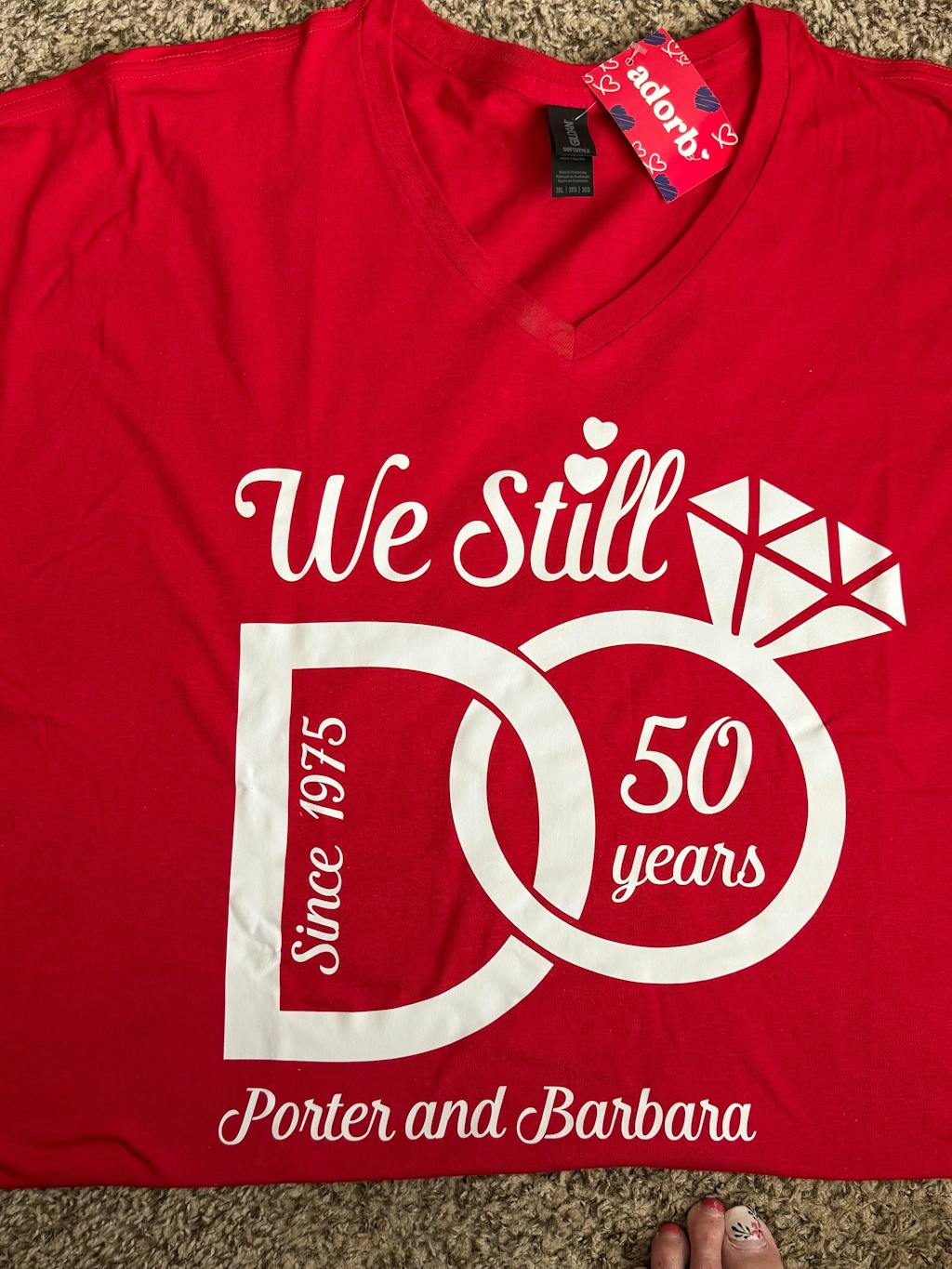 When I saw the We Still Do tees I knew they what I wanted. These are printed on great quality tees and look wonderful. We plan a 4-6 week road trip to celebrate our 50th anniversary and these will have a lot of use. Thank you Adorb for a great quality tee and super fast delivery.