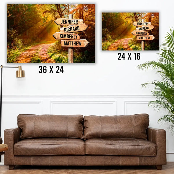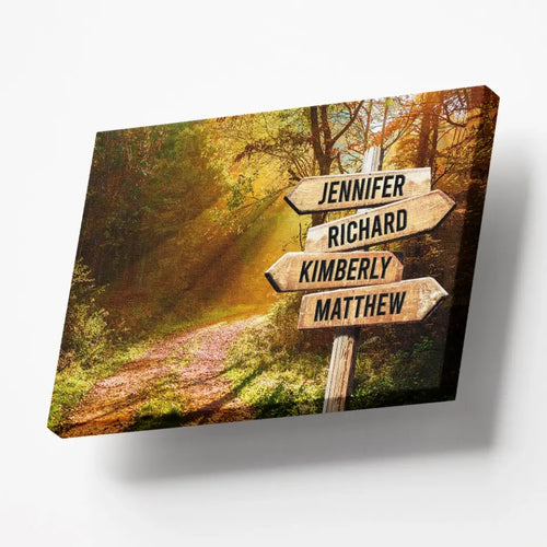 Celebrate connection and togetherness with the Beautiful Autumn Road Color Multi-Names Canvas, a personalized wall art piece featuring a scenic autumn road surrounded by rich fall colors and customized with multiple names. The warm tones and peaceful pathway symbolize shared journeys, lasting bonds, and meaningful moments.