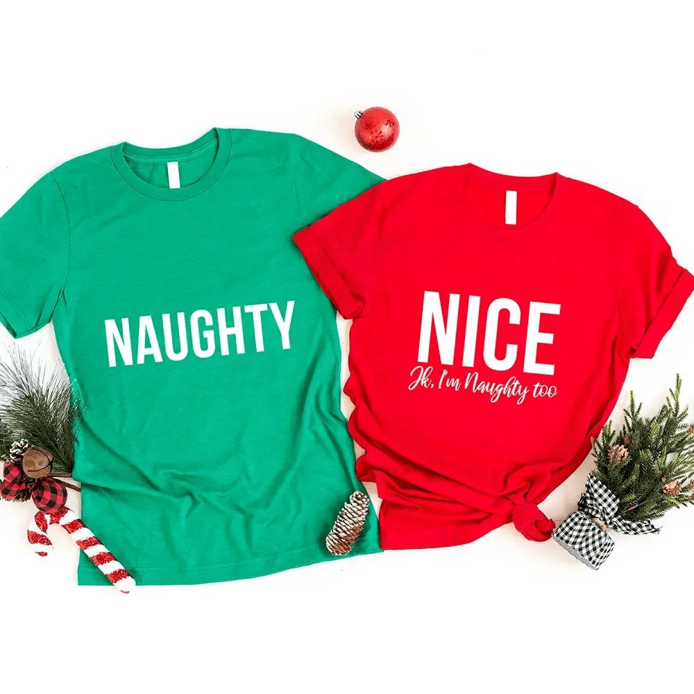 👉 Celebrate your playful side. Order the Christmas Naughty & Nice Couples T-Shirts today and make the season unforgettable together!