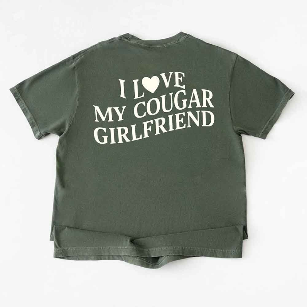 This Comfort Colors tee brings humor and warmth together in a relaxed Valentine’s Day design. The phrase “I Love My Cougar” is lighthearted and confident, made for couples who enjoy leaning into their story with ease. Crafted from garment-dyed cotton, the shirt offers a soft, broken-in feel from the first wear. The relaxed unisex fit makes it easy to style for casual dates, Valentine’s outings, or everyday wear long after the holiday passes.