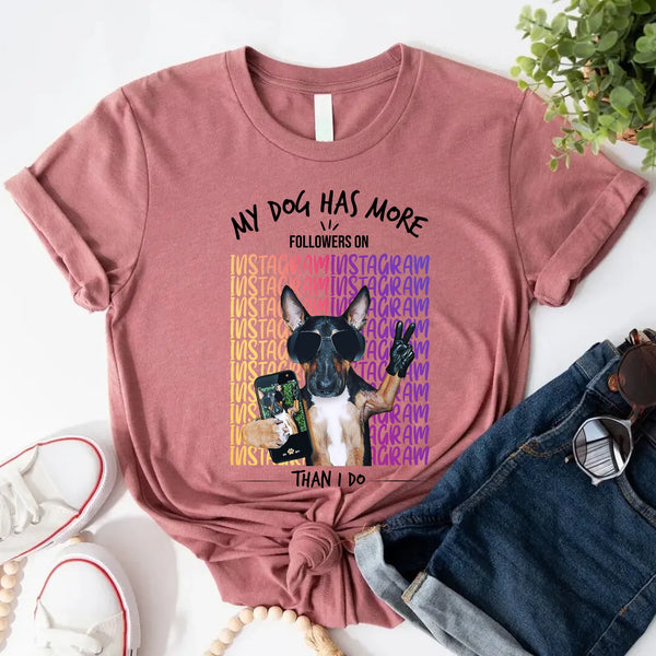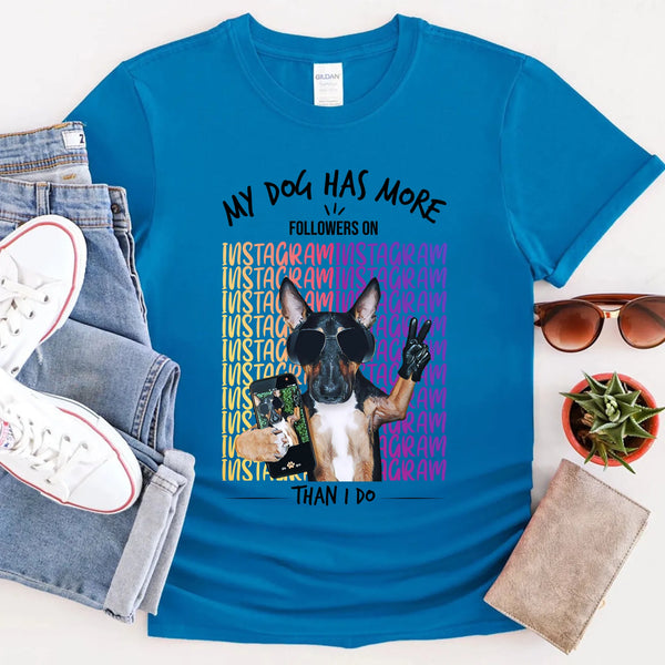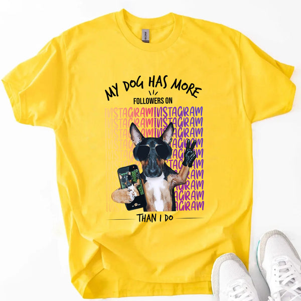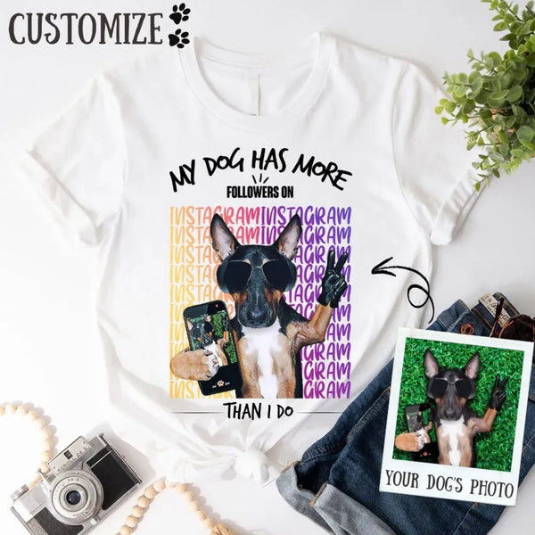 Custom Dog Photo Shirt – My Dog Has More Followers on Instagram Than I Do Funny Personalized Tee