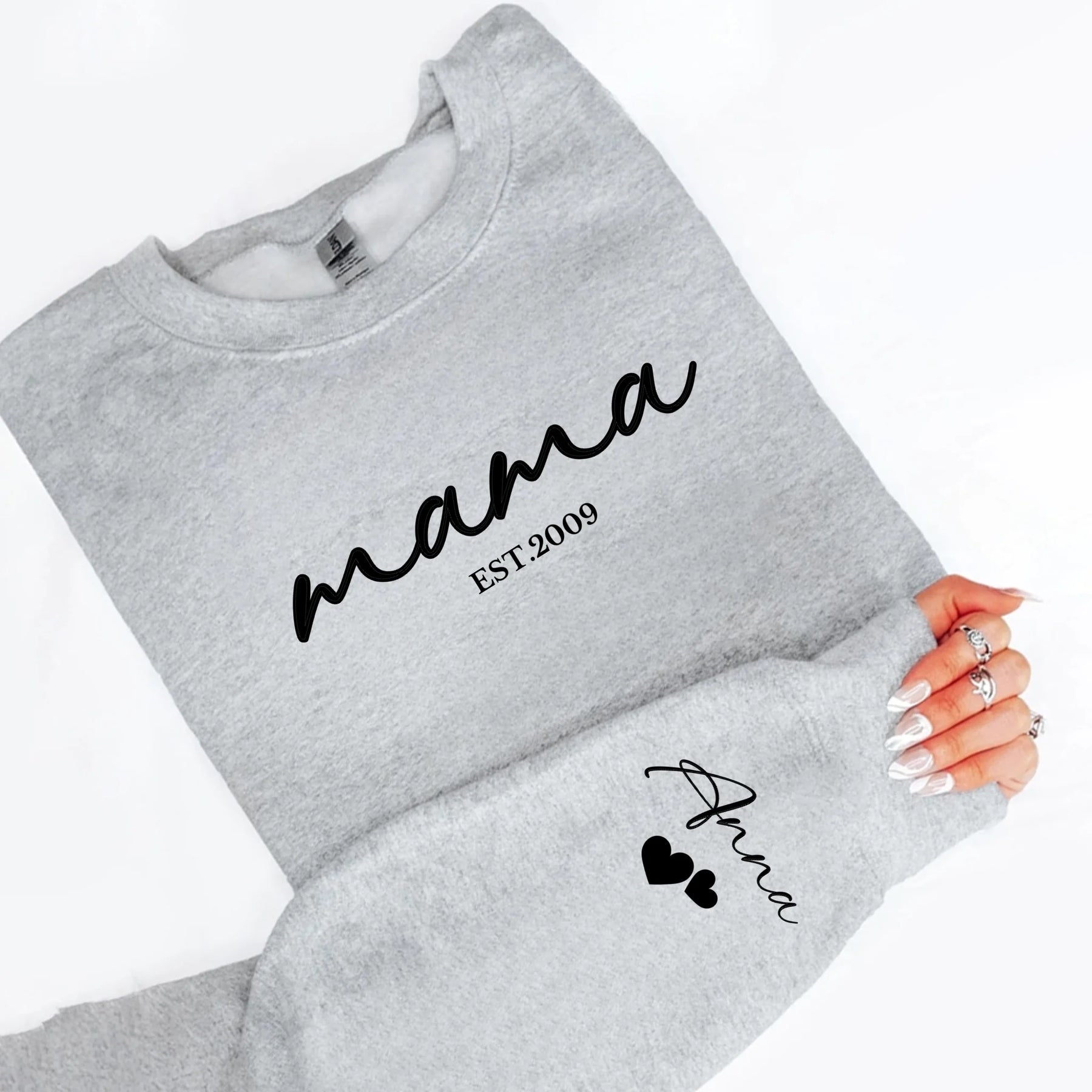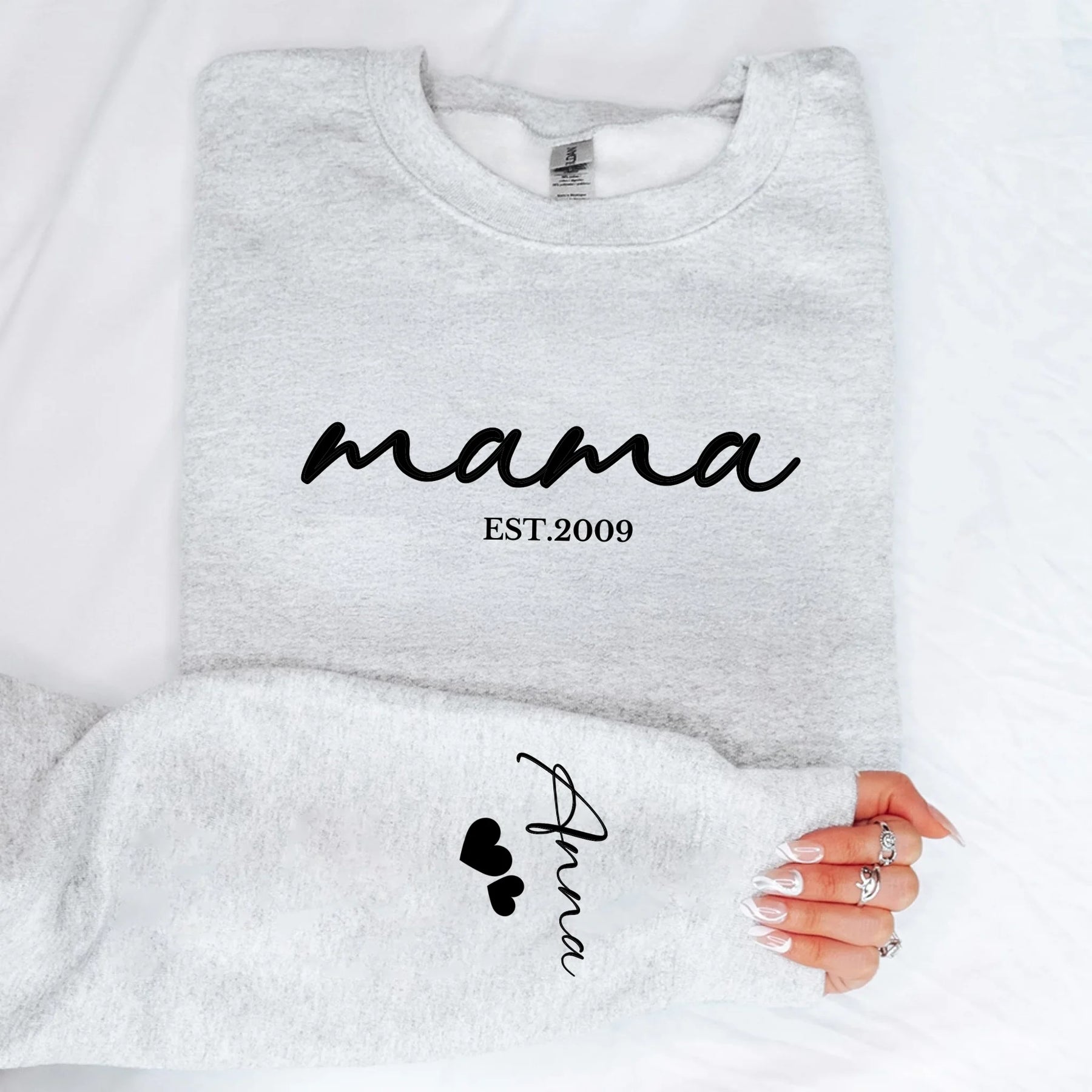 Custom Mama Sweatshirt with Special Date & Kids Names on Sleeve