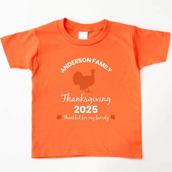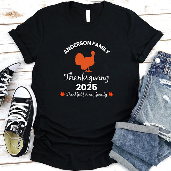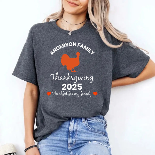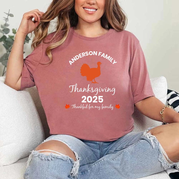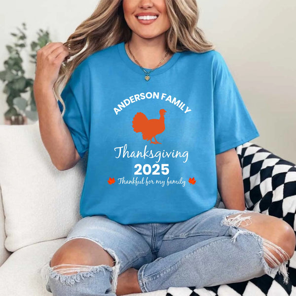Celebrate togetherness this Thanksgiving with a custom tee made for the whole family. Add your family name or each person’s name for a personal touch that makes holiday photos even more special. Whether you’re hosting dinner, visiting loved ones, or simply cherishing the season of gratitude, this shirt is a warm reminder of the blessings you share. Perfect for moms, dads, kids, and grandparents who love making memories in style.