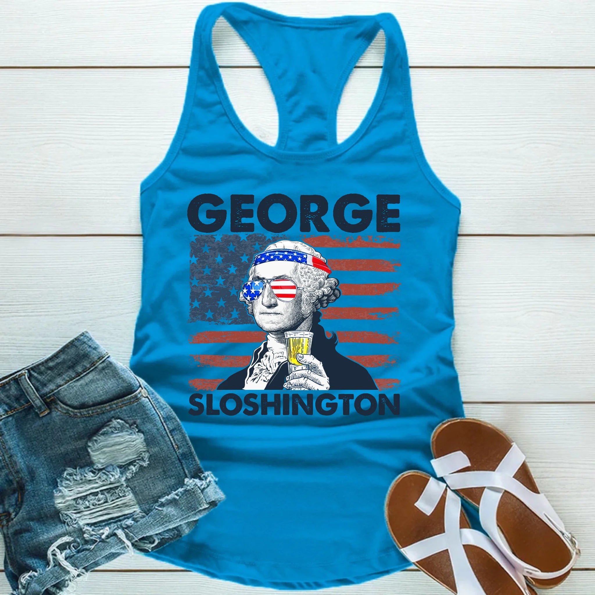 ⭐ Sip like it’s 1776 in our George Sloshington Tank Top — founding father fun with a red, white, and brews twist! ⭐