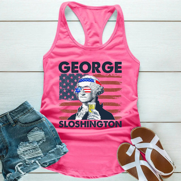🔥 Bring the laughs and legendary vibes with the George Sloshington Tank Top — order now and drink like a patriot! 🔥