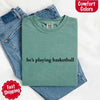 He’s Playing Basketball – Funny Sports Girlfriend Comfort Color Shirt for Women