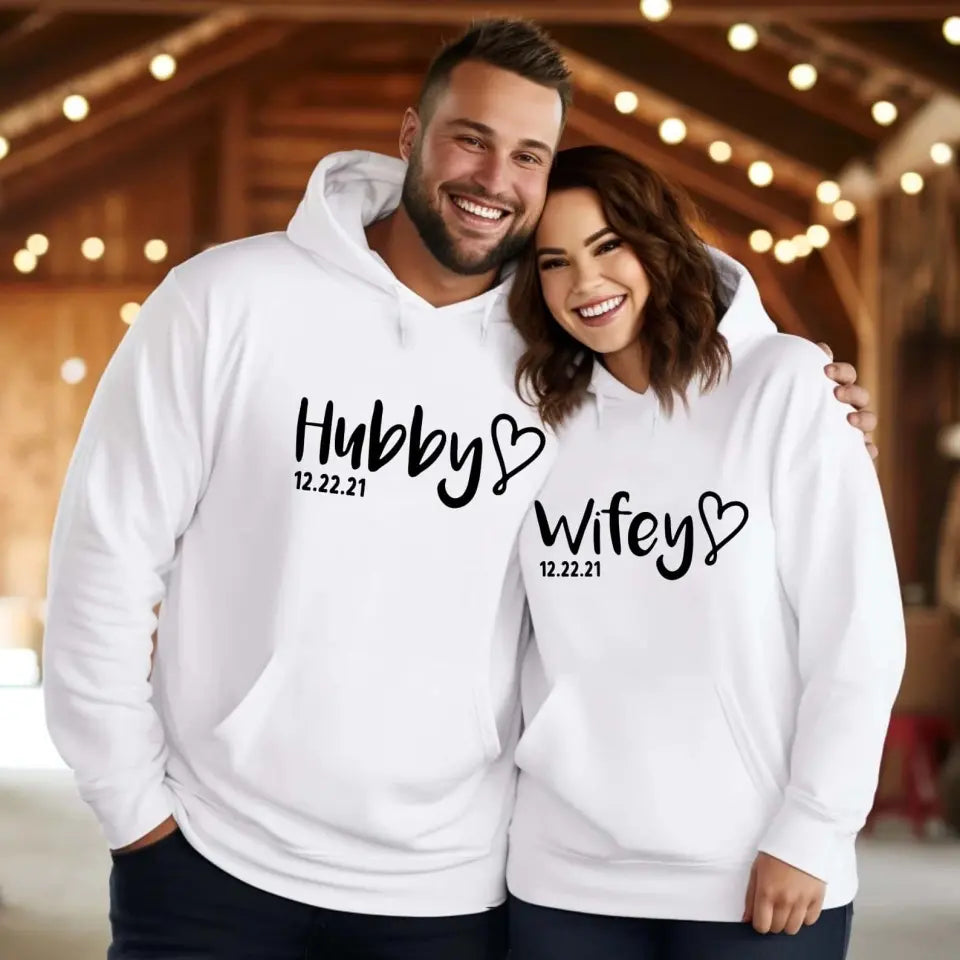 Mark your special day in style with these matching “Hubby & Wifey” pieces, personalized with your wedding date. Perfect for anniversaries, Valentine’s Day, or newlyweds who want to show off their love, these cozy hoodies, sweatshirts, and long sleeves make a timeless keepsake. A thoughtful gift that blends comfort, style, and a personal touch for couples who treasure every moment together.