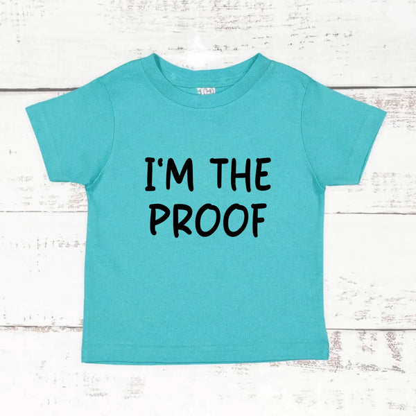 Your child is living, breathing, adorable proof that you’re doing something right—and now there’s a shirt to match that energy! This “I’m The Proof” Kids Tee is the perfect partner to our bestselling “I Make Awesome Kids” parent tee. Whether it’s for photos, errands, or family fun, this playful shirt brings the laughs and the love.