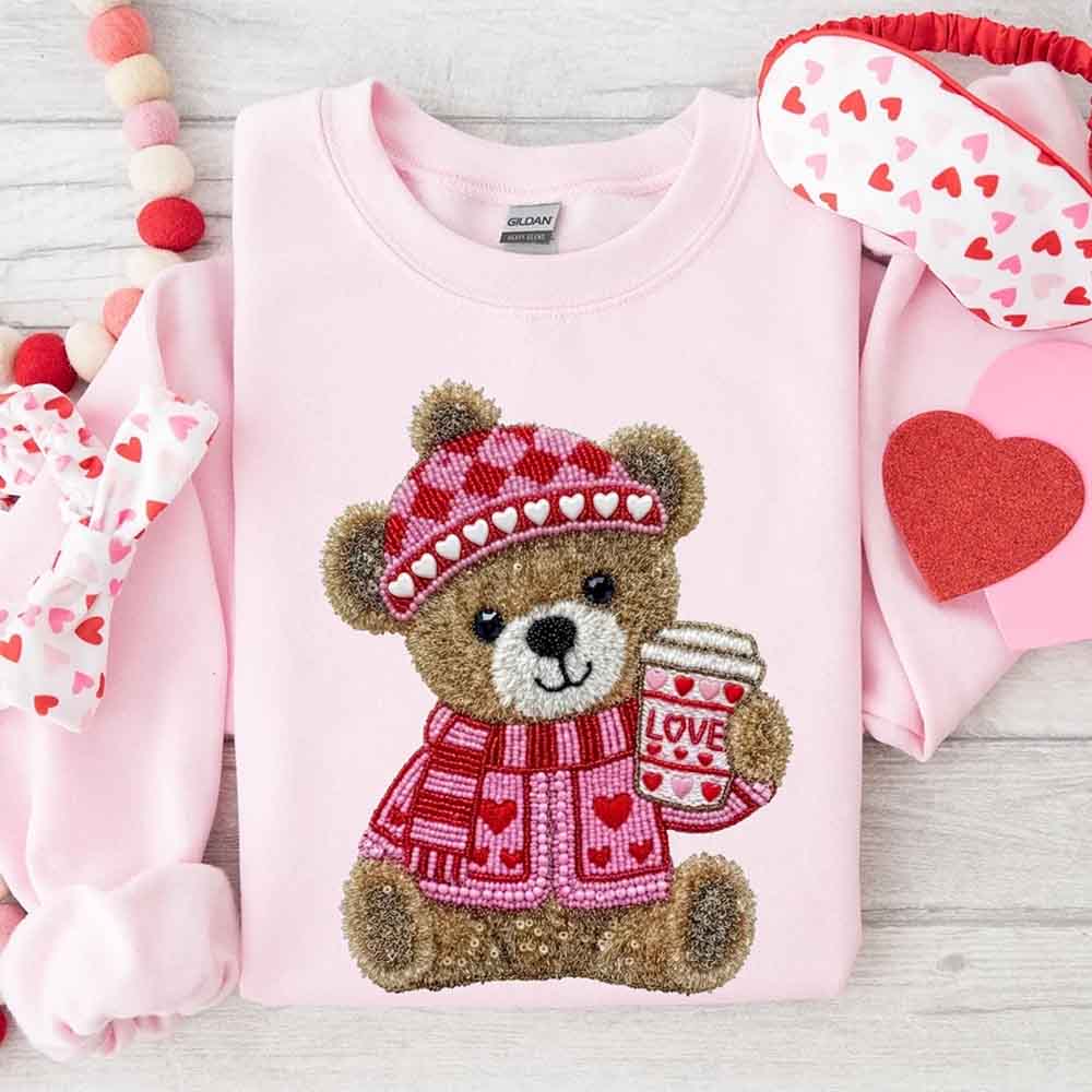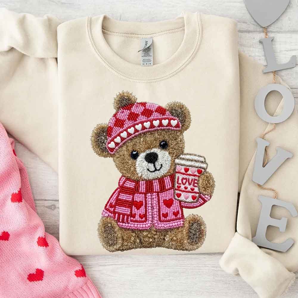 ☕ A warm nod to coffee and comfort with our Love Coffee Teddy Valentine Sweatshirt ❤️