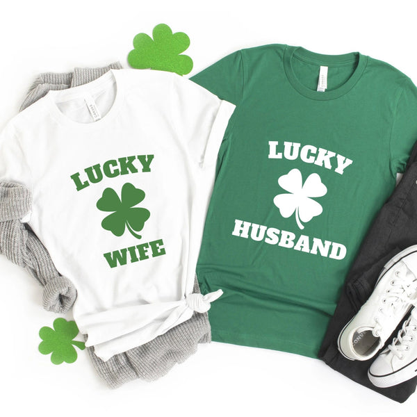 💚 Simple matching tees that share a cheerful message with our Lucky Husband, Lucky Wife Couples Tee 🍀