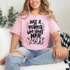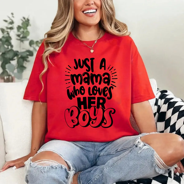 The Mama Who Loves Her Boys T-Shirt is made for mothers who wear their love proudly. Featuring a heartfelt message in a clean, easy-to-style design, this tee celebrates the bond between a mama and her boys. Crafted from soft, breathable fabric, it offers comfort you can count on for school drop-offs, errands, play dates, or relaxed days at home. It pairs effortlessly with jeans, leggings, or layered looks, making it a favorite for everyday wear.