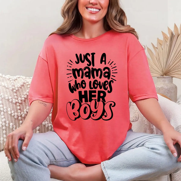 👉 Celebrate your boys in comfort and style. Add the Mama Who Loves Her Boys T-Shirt to your cart today.
