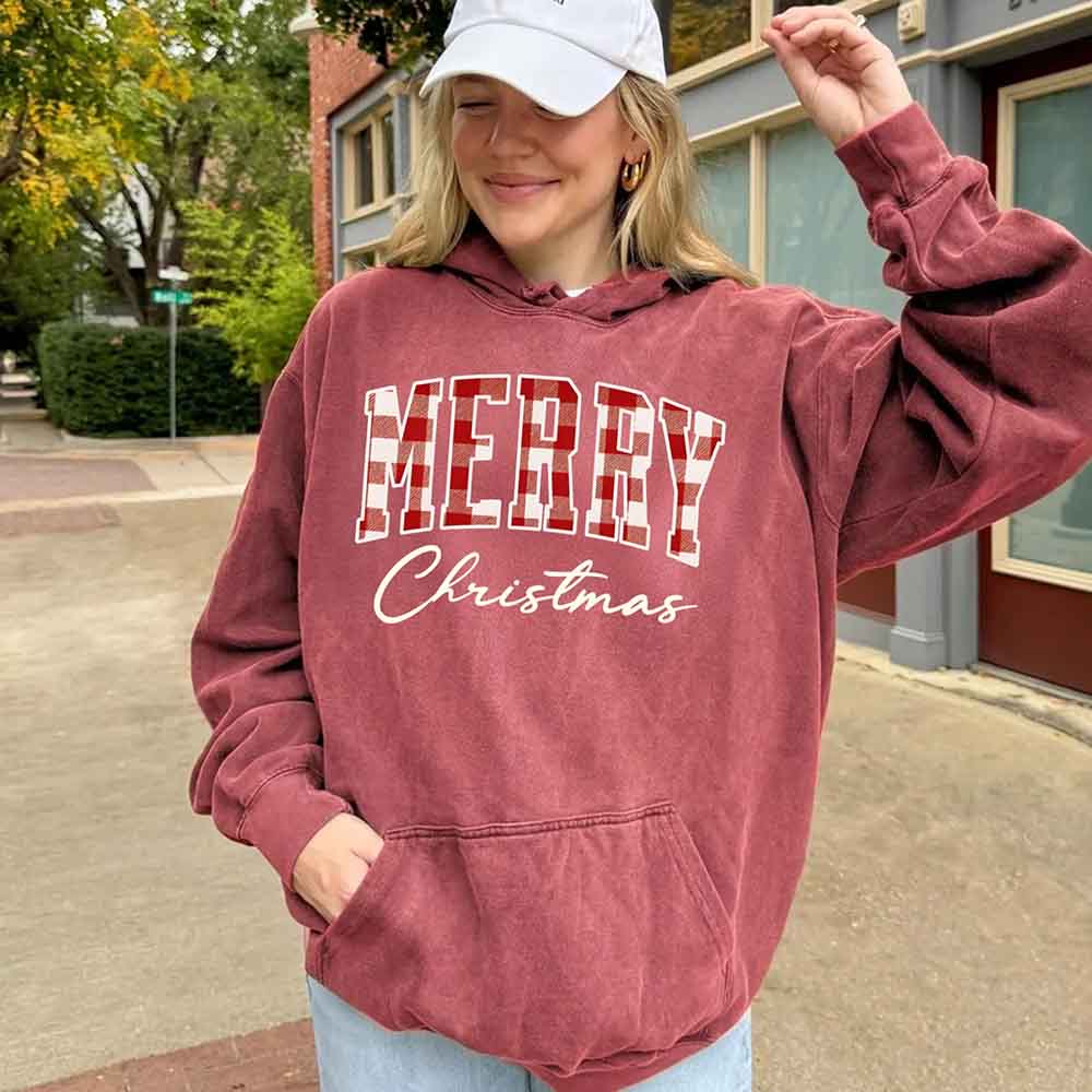 Bring a warm and coordinated look to the season with these Merry Christmas Comfort Colors long sleeve shirtsand buffalo plaid hoodies. The vintage-washed fabric offers an easy, relaxed fit that feels good through holiday gatherings, winter outings, or quiet evenings at home. The plaid detail adds a familiar seasonal touch, making these pieces ideal for family photos or matching group traditions. Durable, soft, and made for everyday wear, they create a simple and unified look that fits the spirit of Christmas.