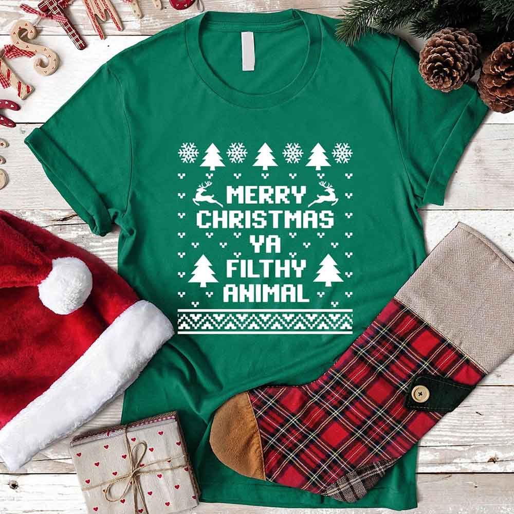 ✅ Eye-catching “Merry Christmas Ya Filthy Animal” graphic