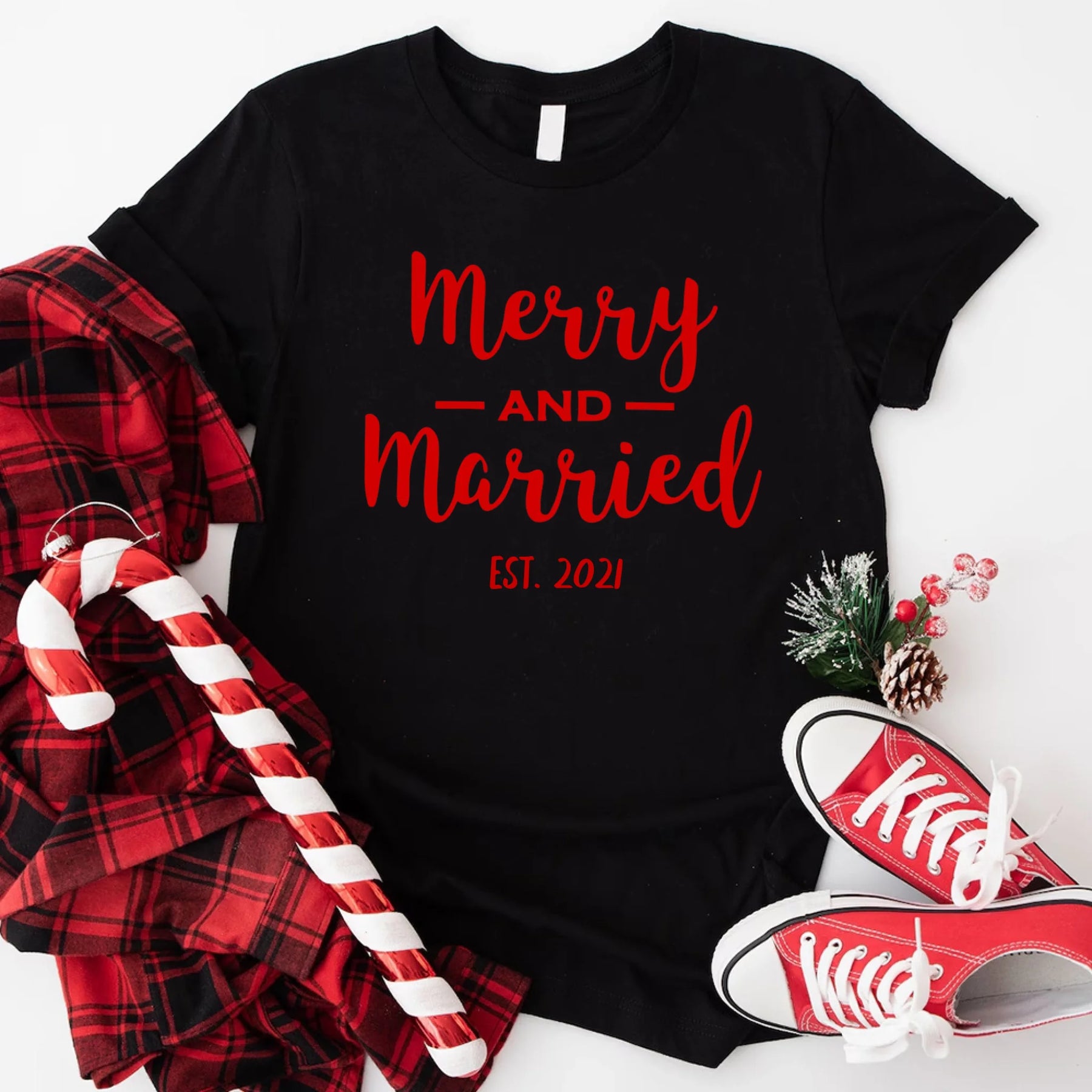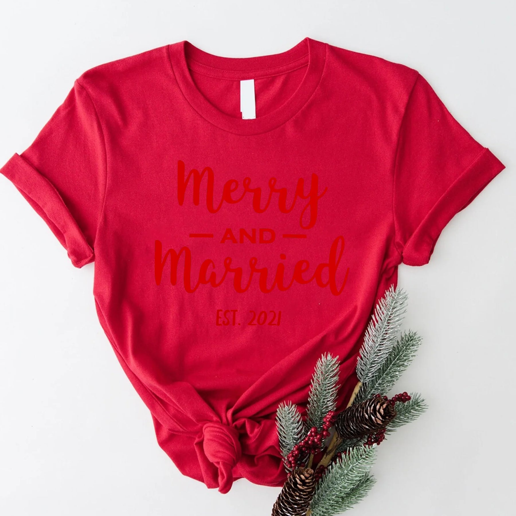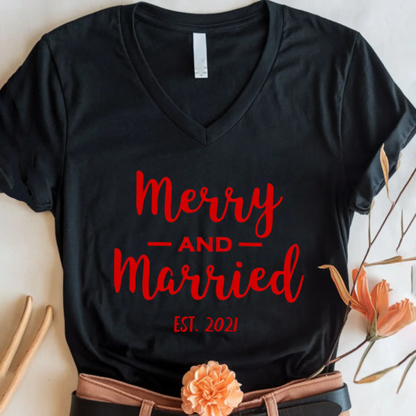 ❤️ The Perfect Tee for Your First Married Christmas With Our Merry & Married Personalized Christmas Tee 💍