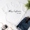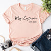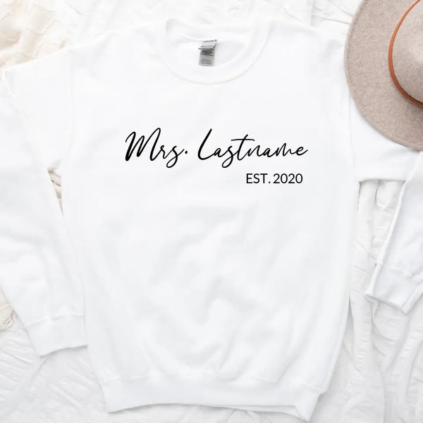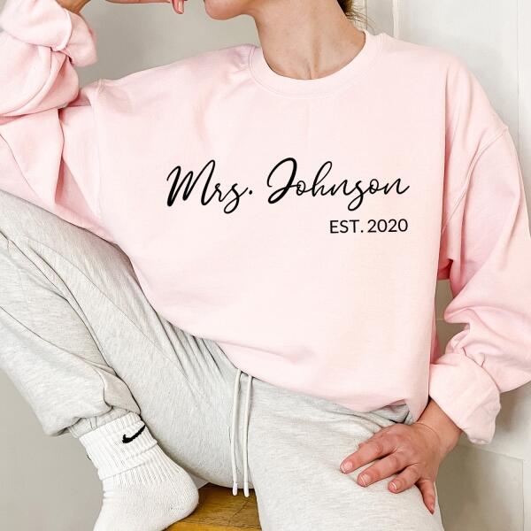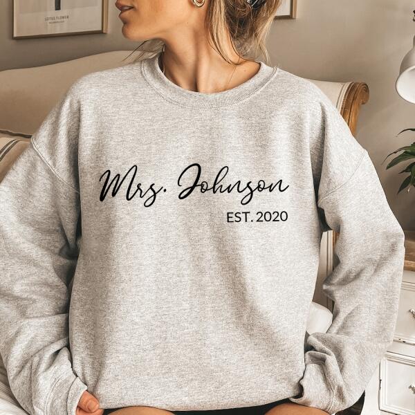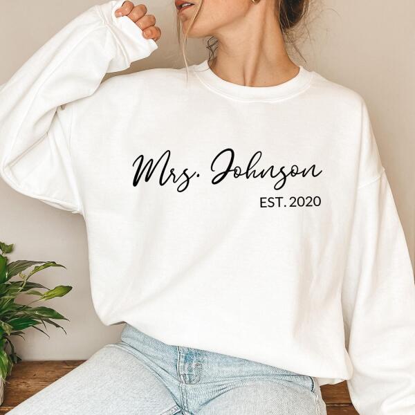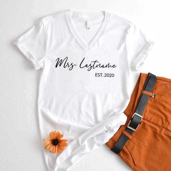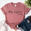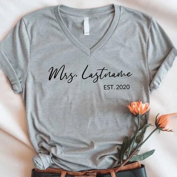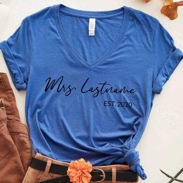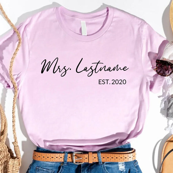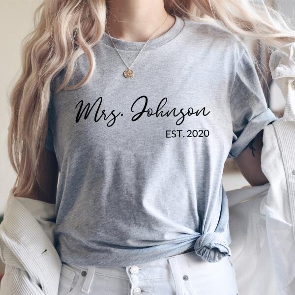 Celebrate your love and new last name with our Mrs. Personalized Top—a stylish and comfortable way to showcase your bridal journey! Whether you're newly engaged, a soon-to-be bride, or celebrating your honeymoon, this custom Mrs. top is the perfect way to mark the occasion.
