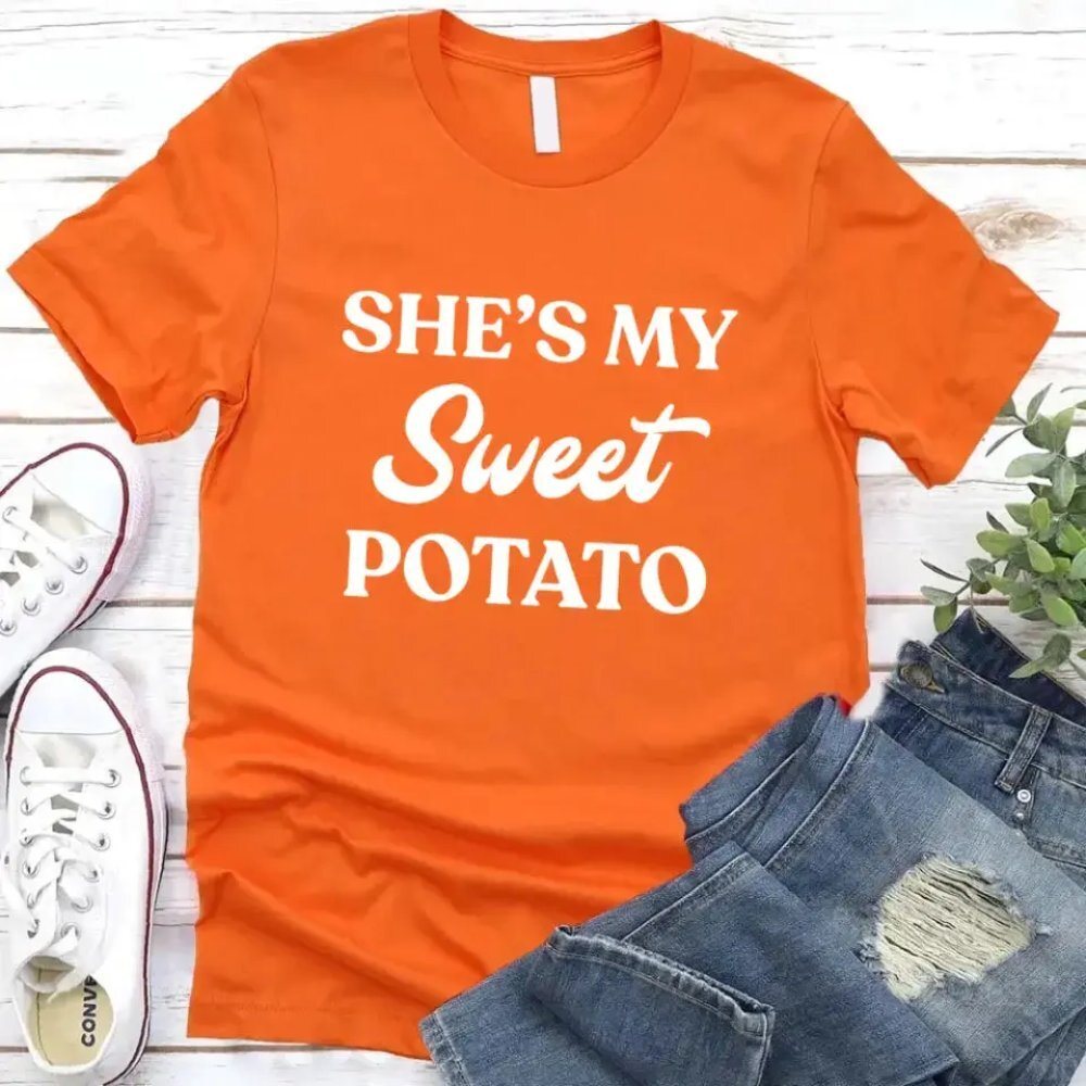 May include a My Sweet Potato T-Shirt with funny Thanksgiving-themed design, styled for fall and holiday gatherings.