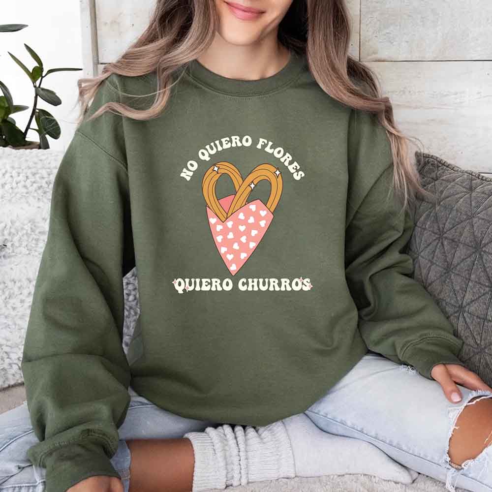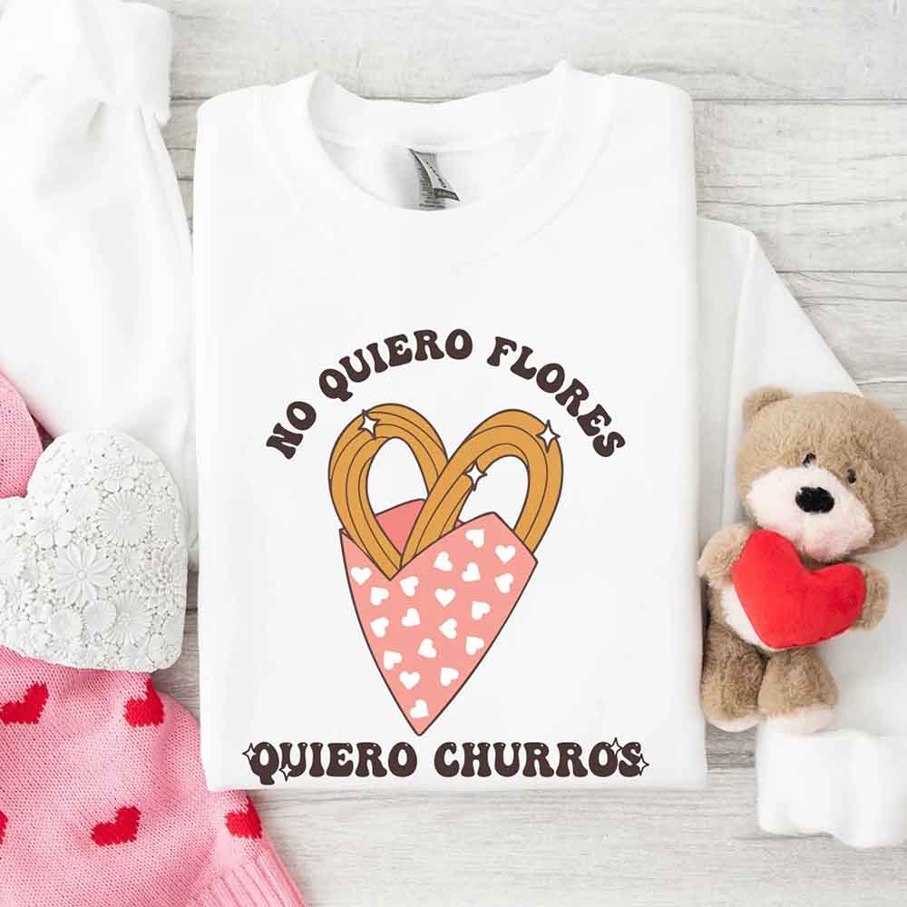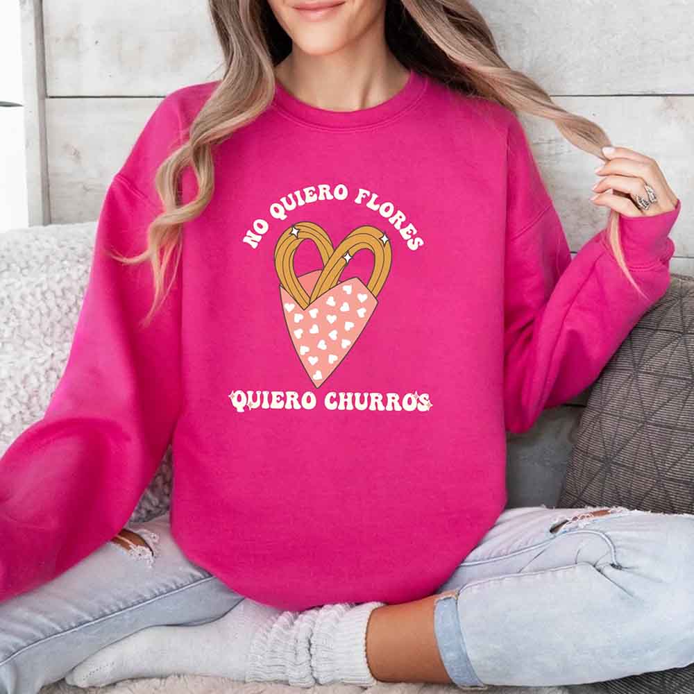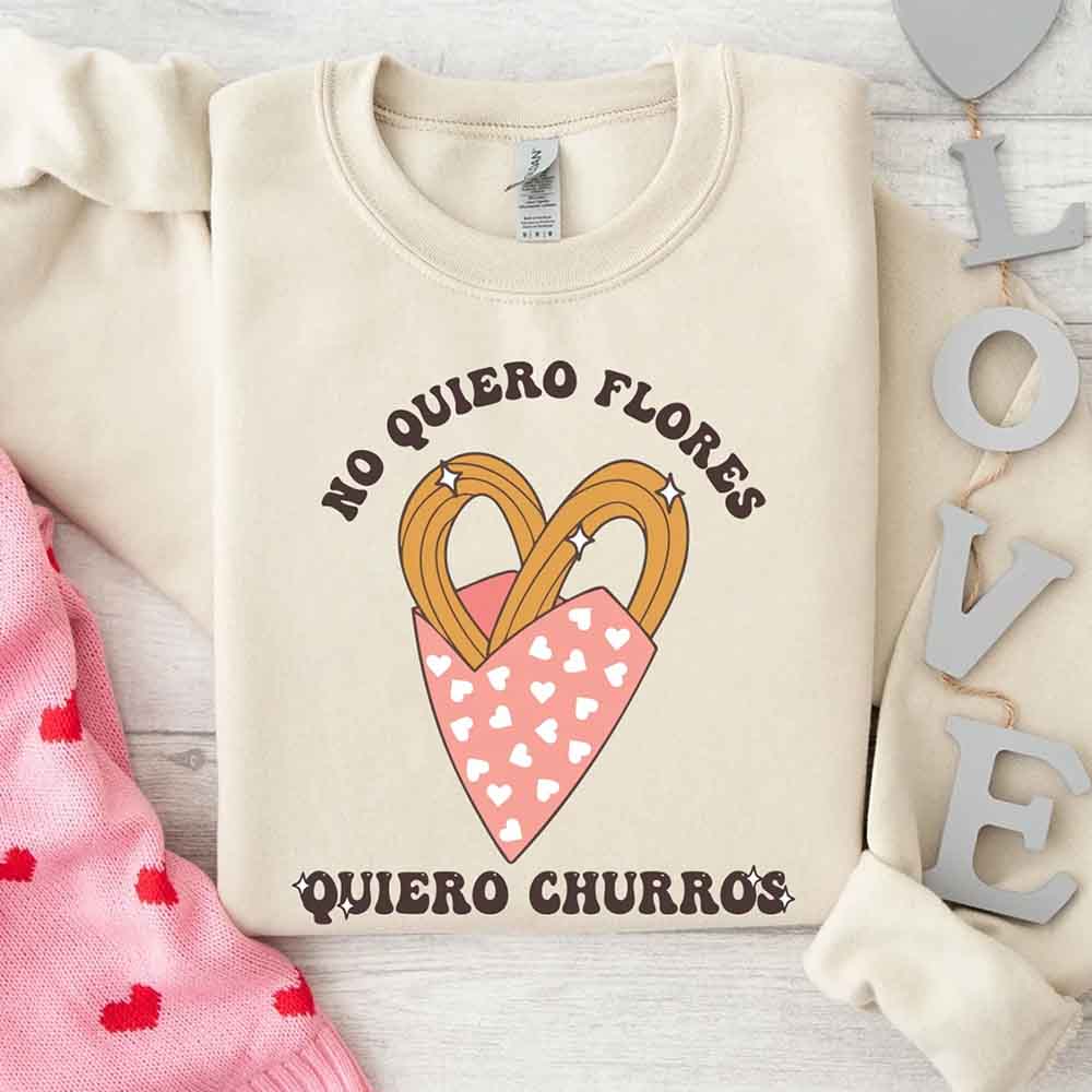 No Quiero Flores Valentine Sweatshirt - Cute Churros Valentine Day's Sweater