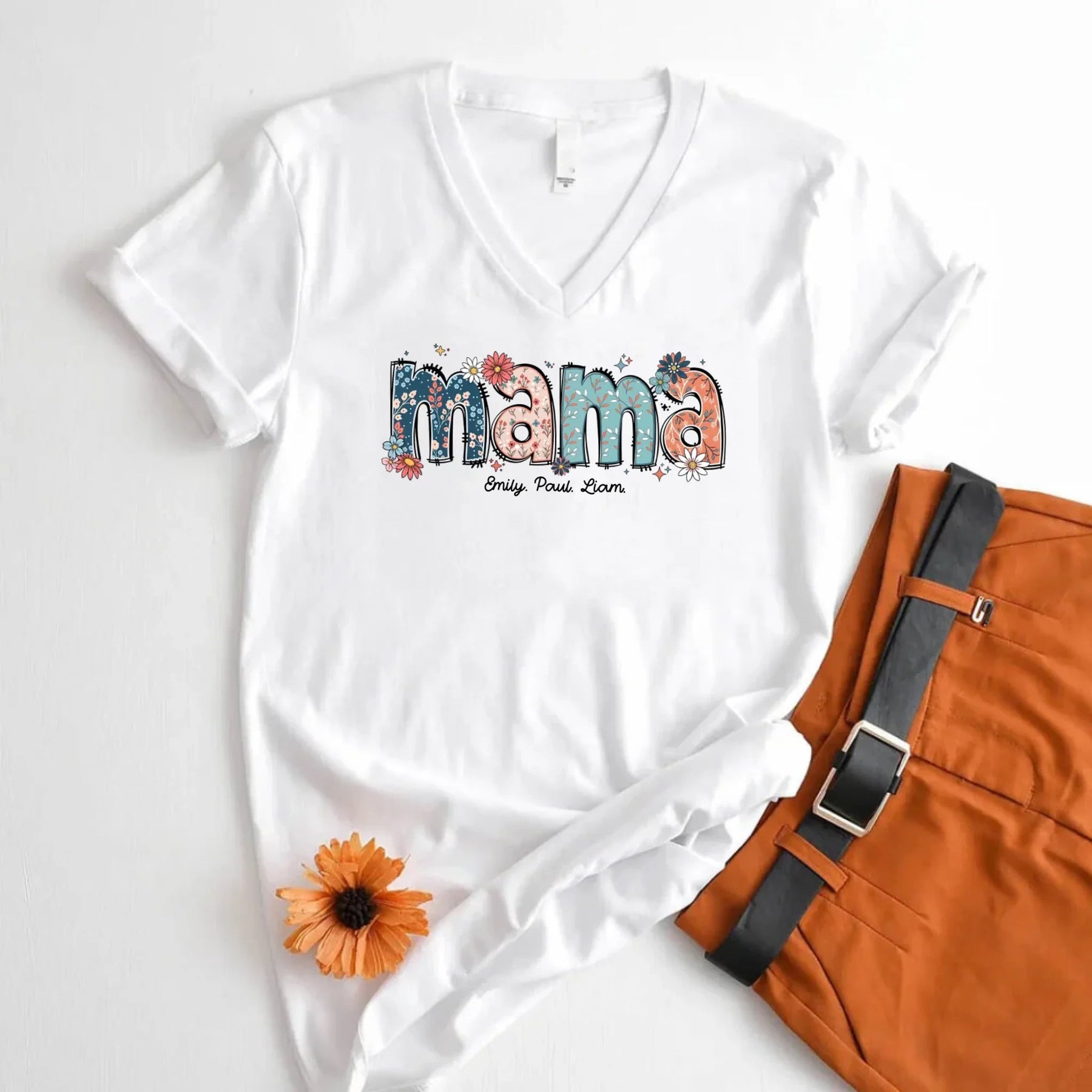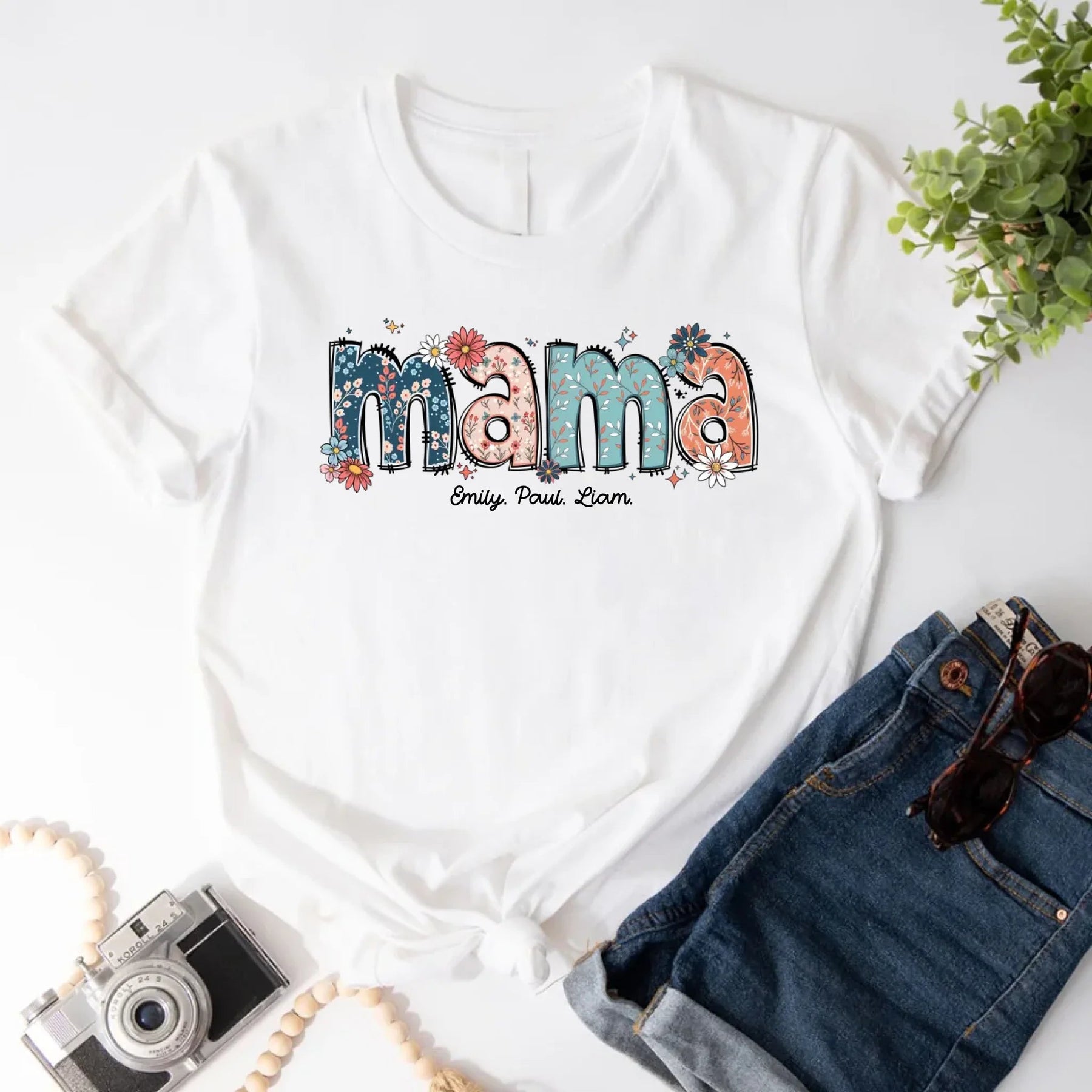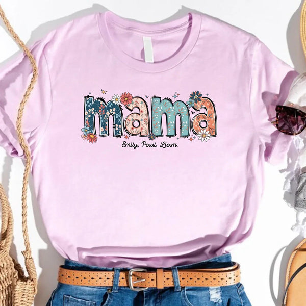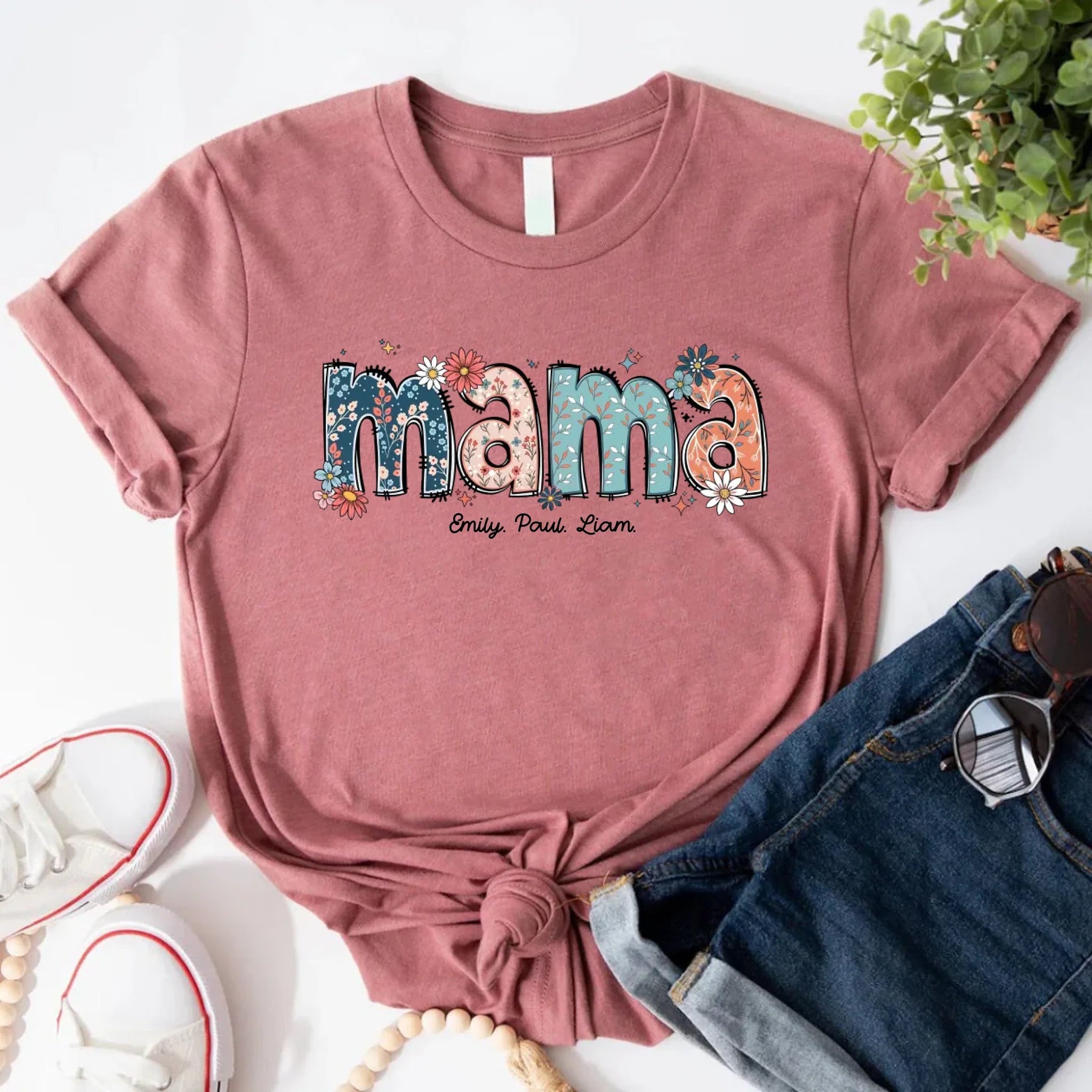 Custom Mama Tee – Kids’ Names with Floral Mama Text