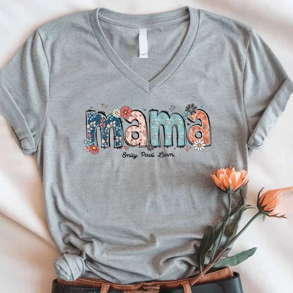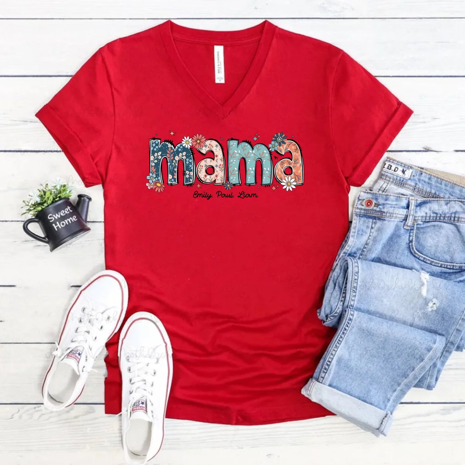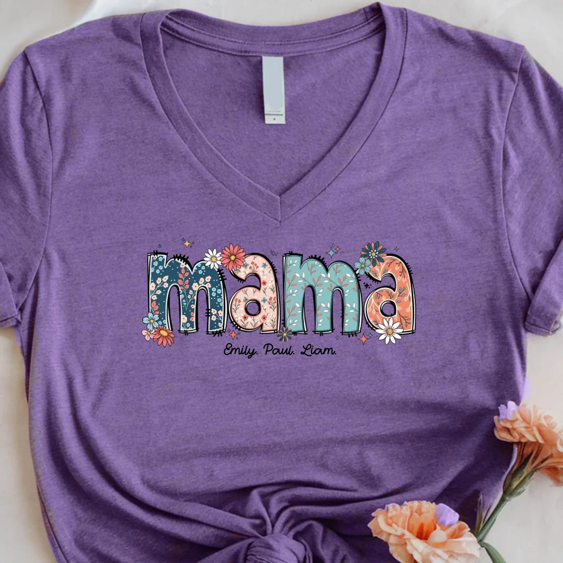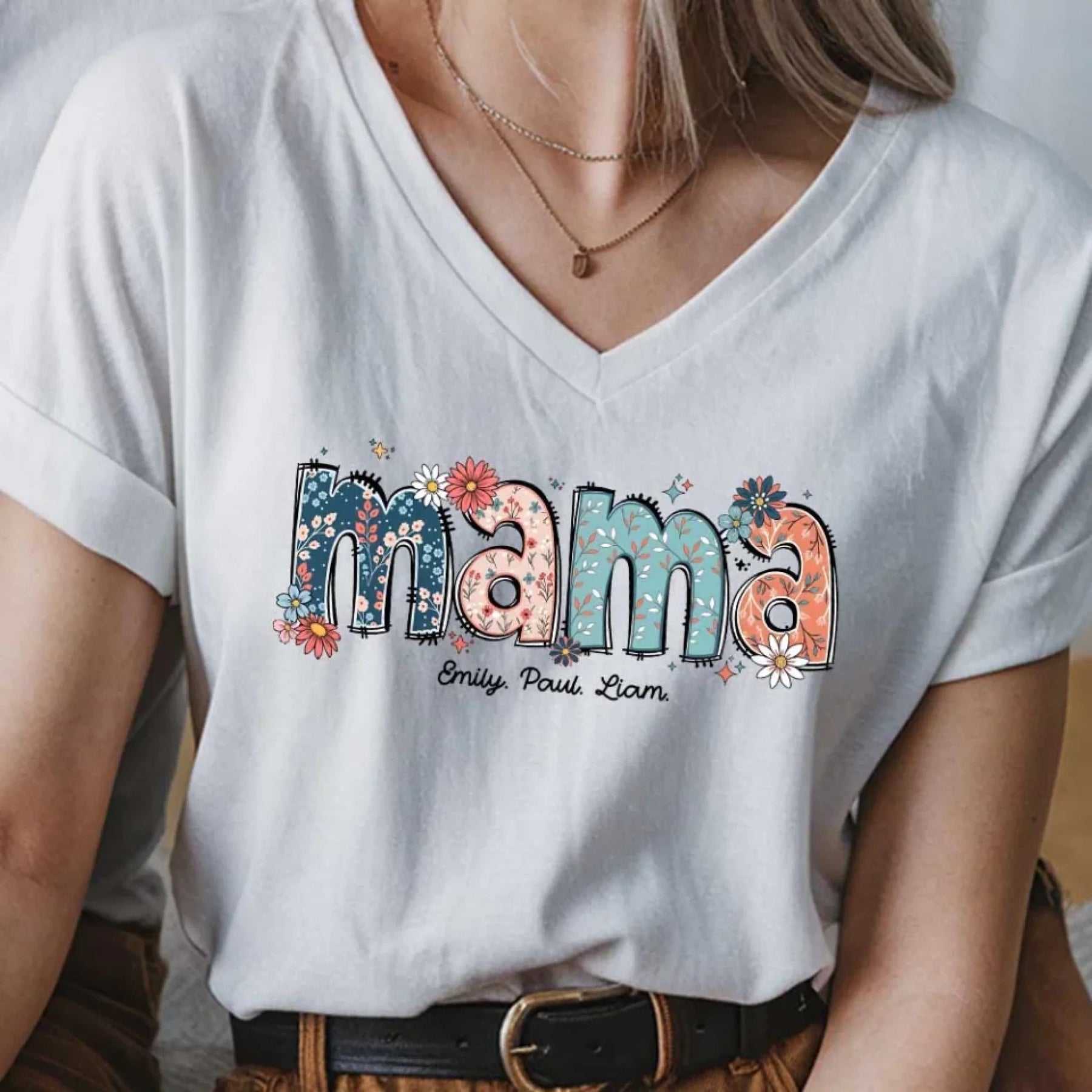 Custom Mama Tee – Kids’ Names with Floral Mama Text