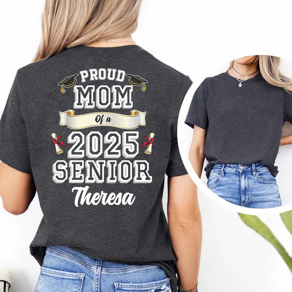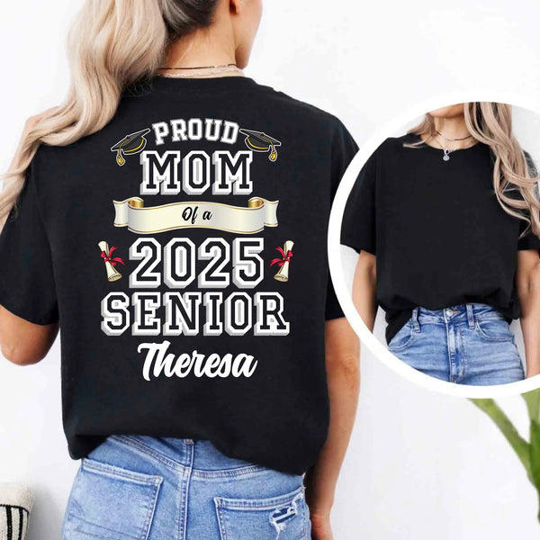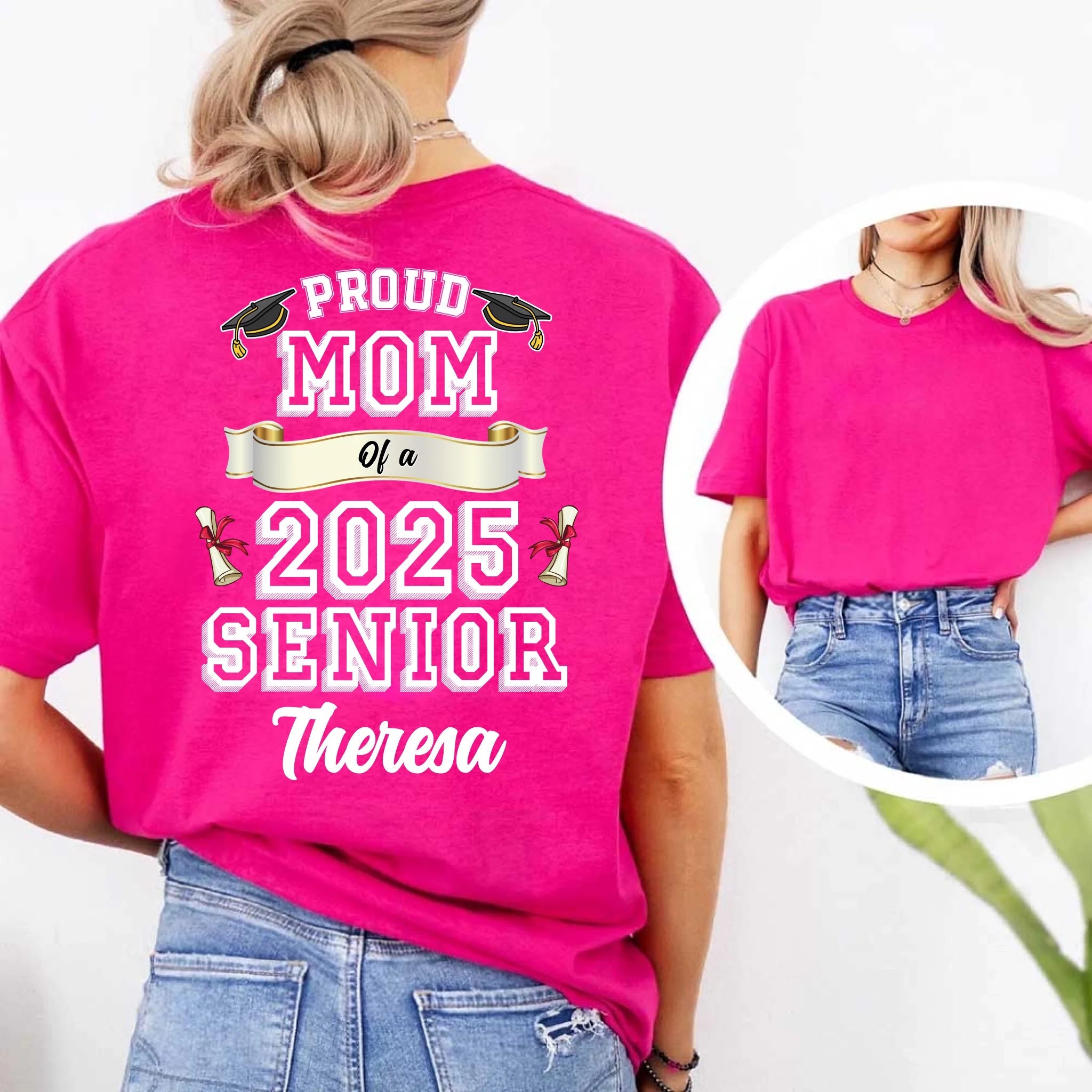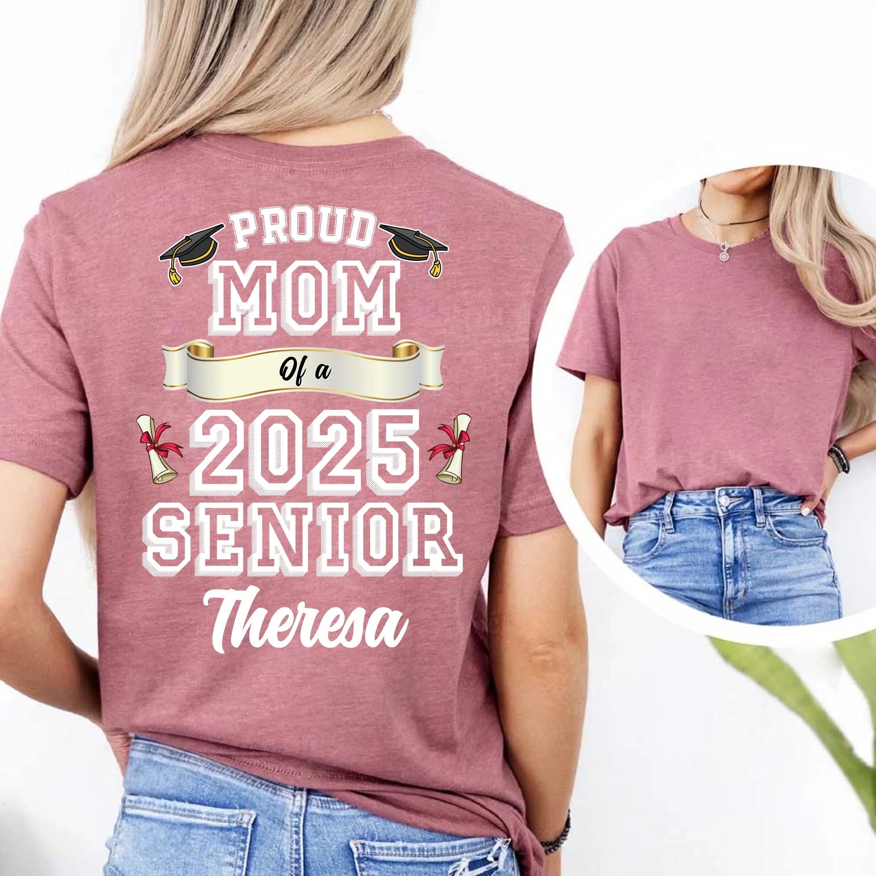 Perfect for proud moms looking to show off their senior’s big achievement. Whether it’s for graduation ceremonies, senior nights, or family photos, this shirt adds a personal touch that turns the moment into a treasured keepsake. Thoughtful, wearable, and made to celebrate — it’s a gift that says “I’m so proud of you!”