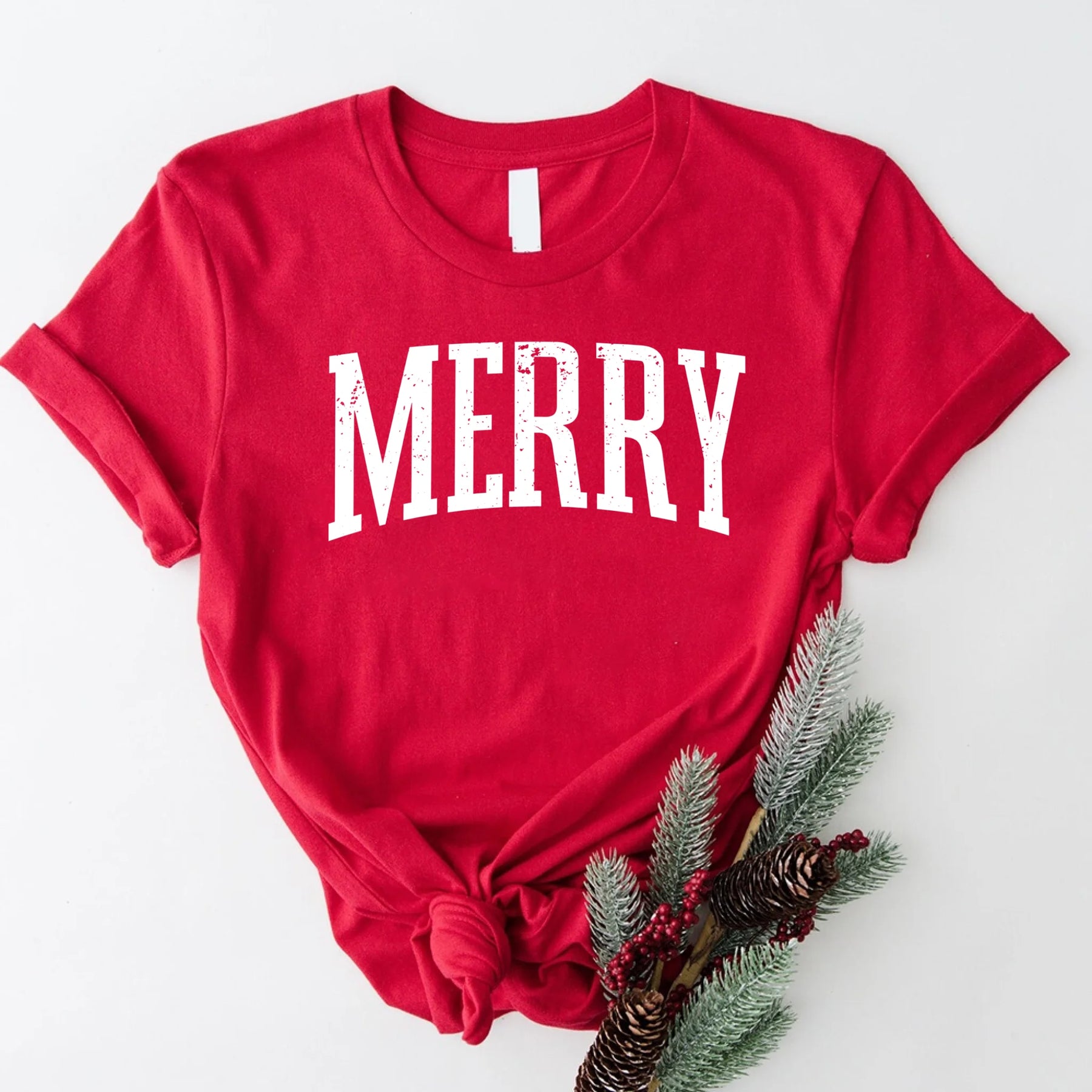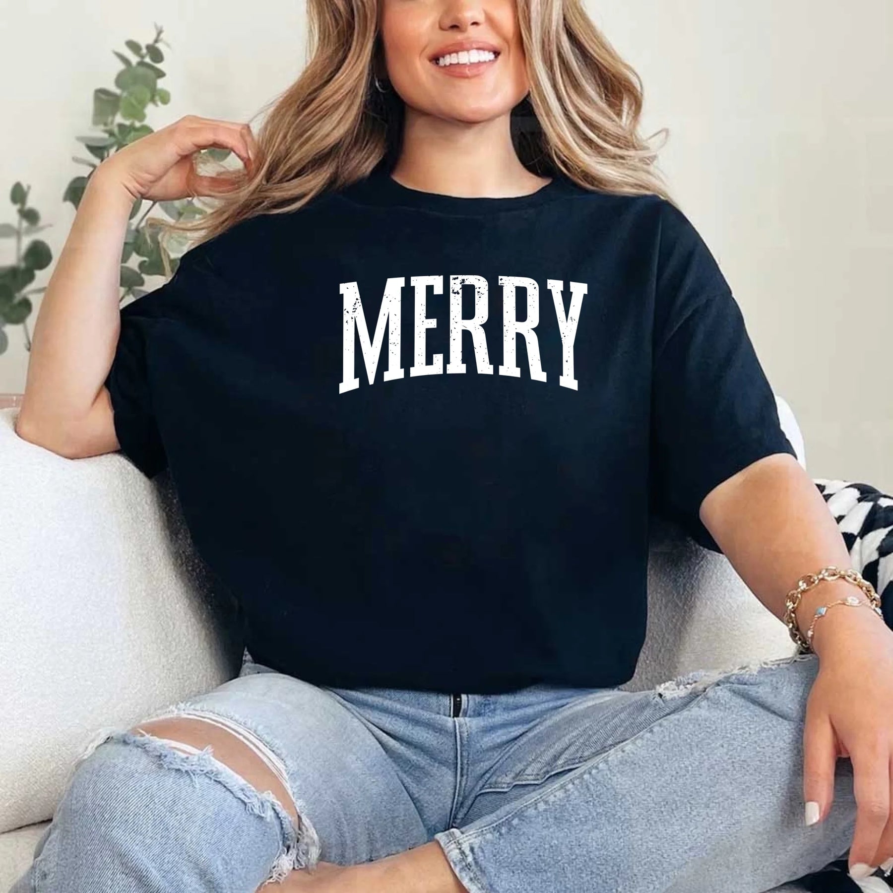 apture the joy of the season with the Retro Merry Christmas T-Shirt, a soft and stylish tee that blends vintage flair with modern comfort. Designed for women who love timeless holiday looks, this shirt features a classic “Merry" print in a retro font that feels both cheerful and nostalgic. Made from breathable cotton, it’s ideal for decorating the tree, attending holiday gatherings, or simply enjoying a cozy evening at home. The relaxed fit and soft-washed texture make it a piece you’ll reach for all season long.