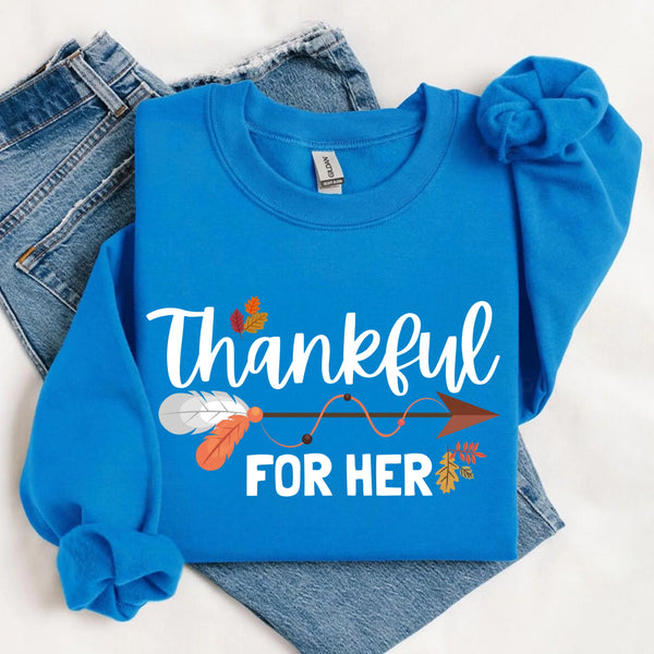 Thankful For Her/Him Valentines Couple Sweatshirt – Cute Matching Holiday Crew Neck
