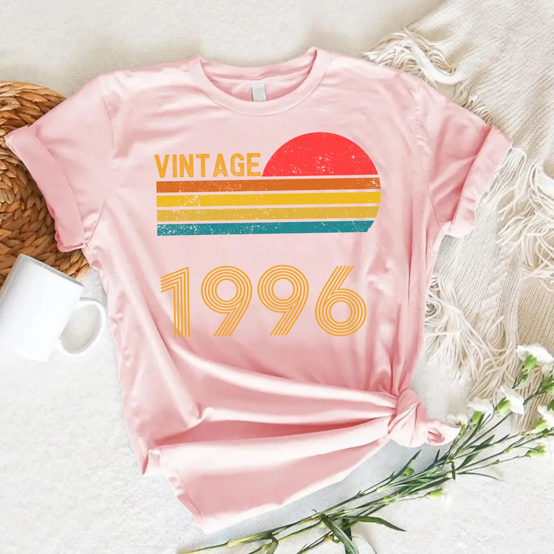 May include a personalized vintage-style t-shirt with a retro sun graphic and customizable year text printed on the front.