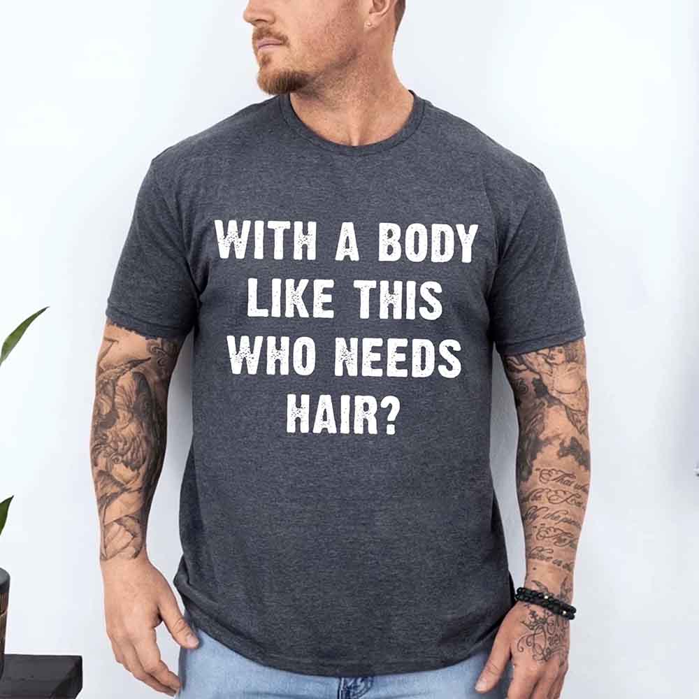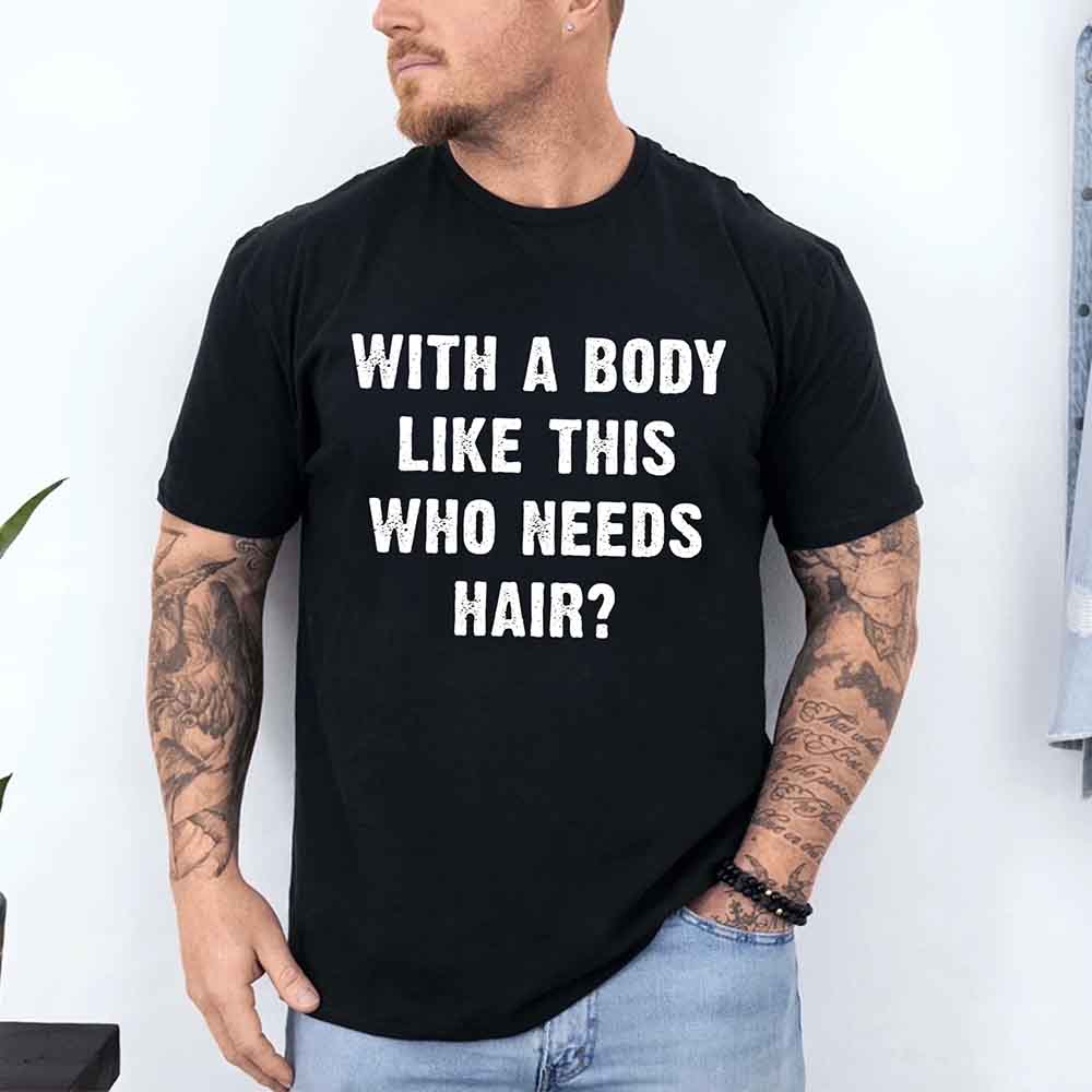 With a Body Like This Who Needs Hair Tee – Funny Balding & Dad Bod Shirt